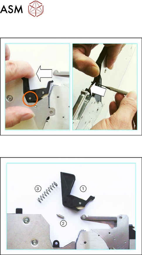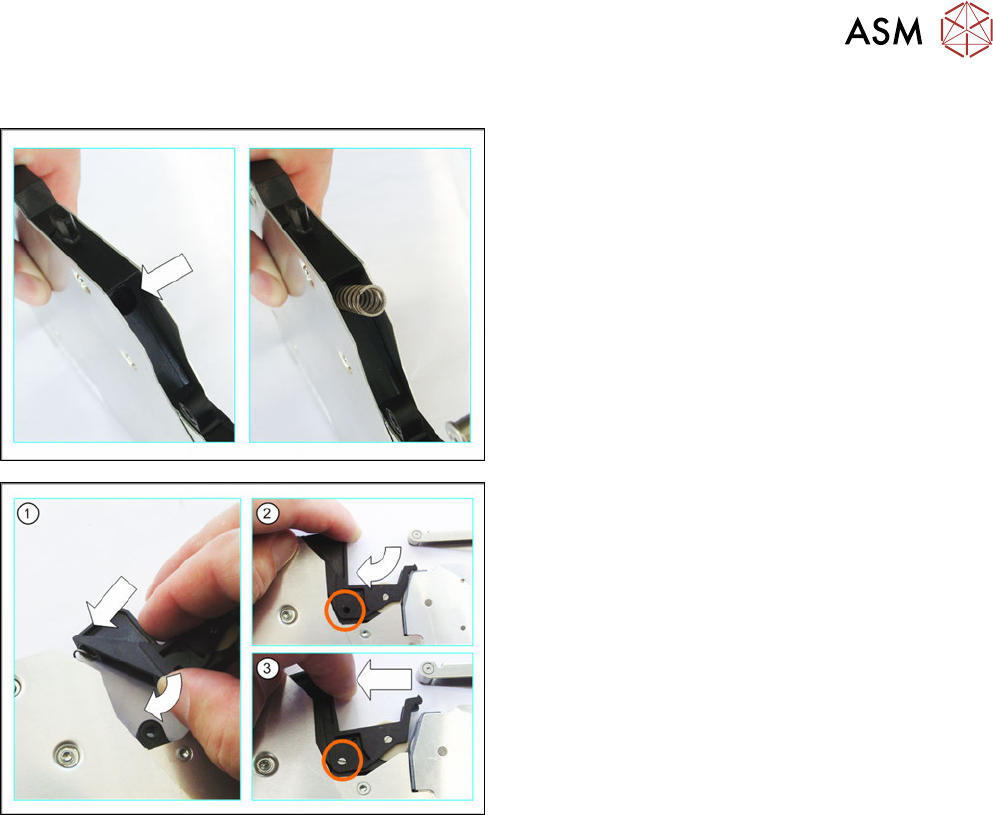6 Reparatur der X-Zuführmodule 6.6 Wippe Serviceanleitung SIPLACE X-Feeder 4 - 88 mm 11/2017 75 6.6.2.2 Wippe montieren (4–88mm) ► Stecken Sie die Feder bis zum Anschlag in die abgebildete Bohrung. Achtung: Bei breite…