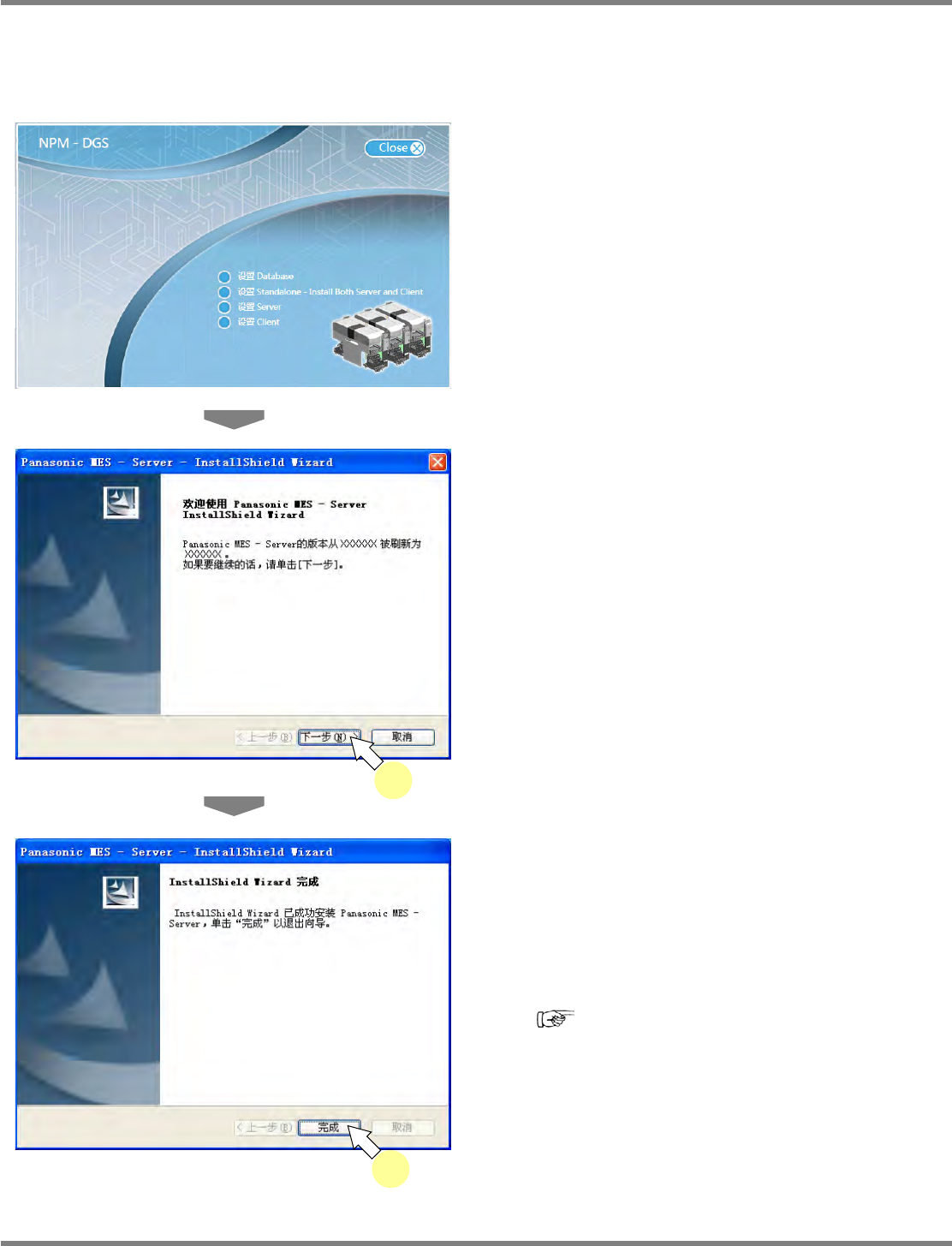 NPM-DGS 程序手册 安装以及设定 EJS9AC-MB-02P-21 Page 2-103 4 点击 [ 下一步 ] 。 5 在 ‘ 身份验证方式 ’ 下选择 [SQL Server 身份验证 ] 。 6 输入 ‘ 用户名 ’ 和 ‘ 密码 ’ ,点击 [ 下一步 ] 。 ‘ 用户名 ’ 和 ‘ 密码 ’ , 请输入在 ‘2.1.9 SQL Server 的登录信息设定 ’ 所设定的内容。 7 点击 [ 下一步 ] 。 8 点击…