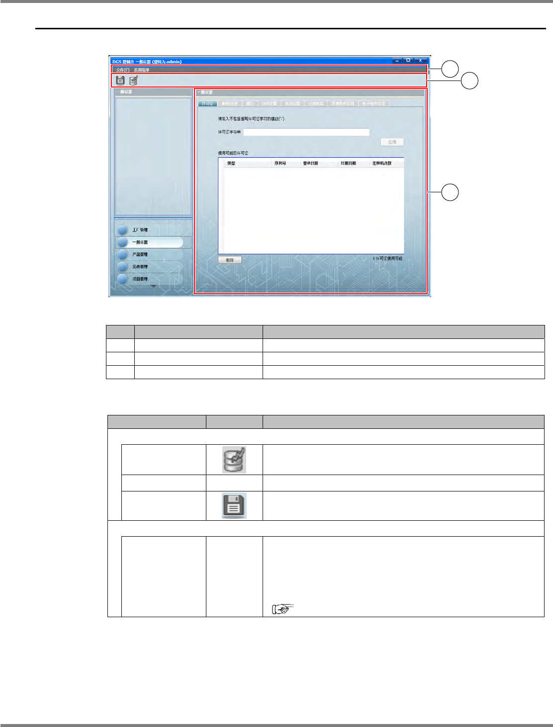 许可证设定画面。在许可证设定中设定生产数据