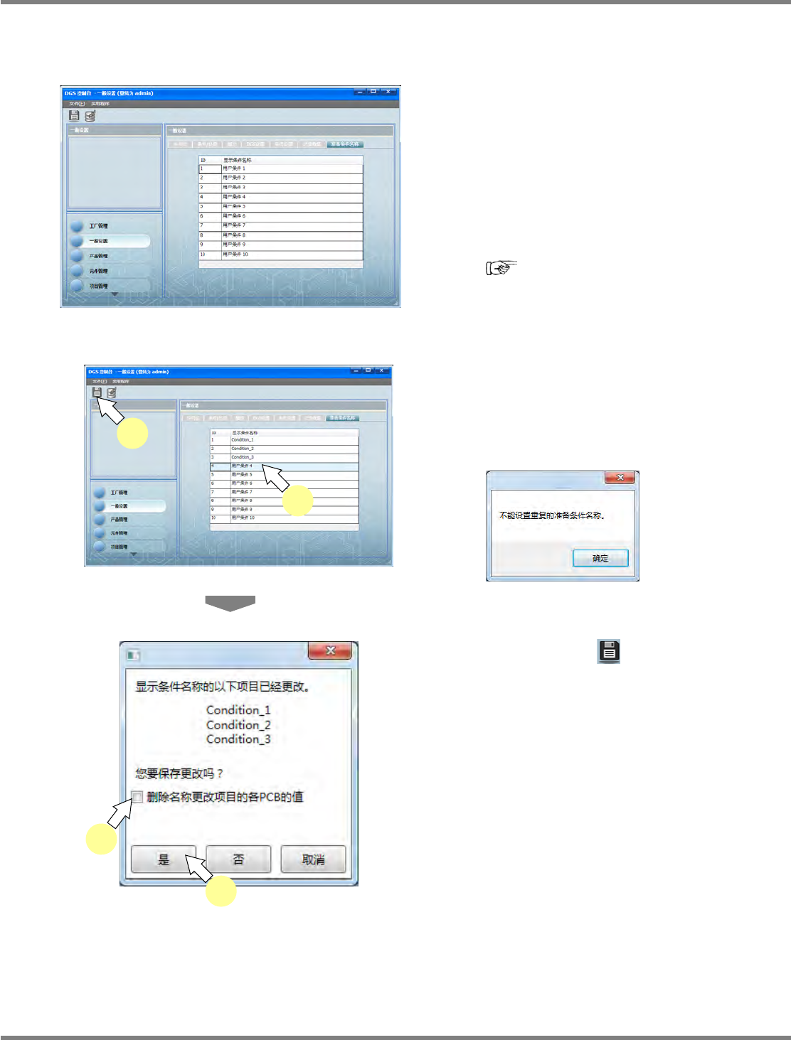 相同的条件名、条件名不能设为空白。