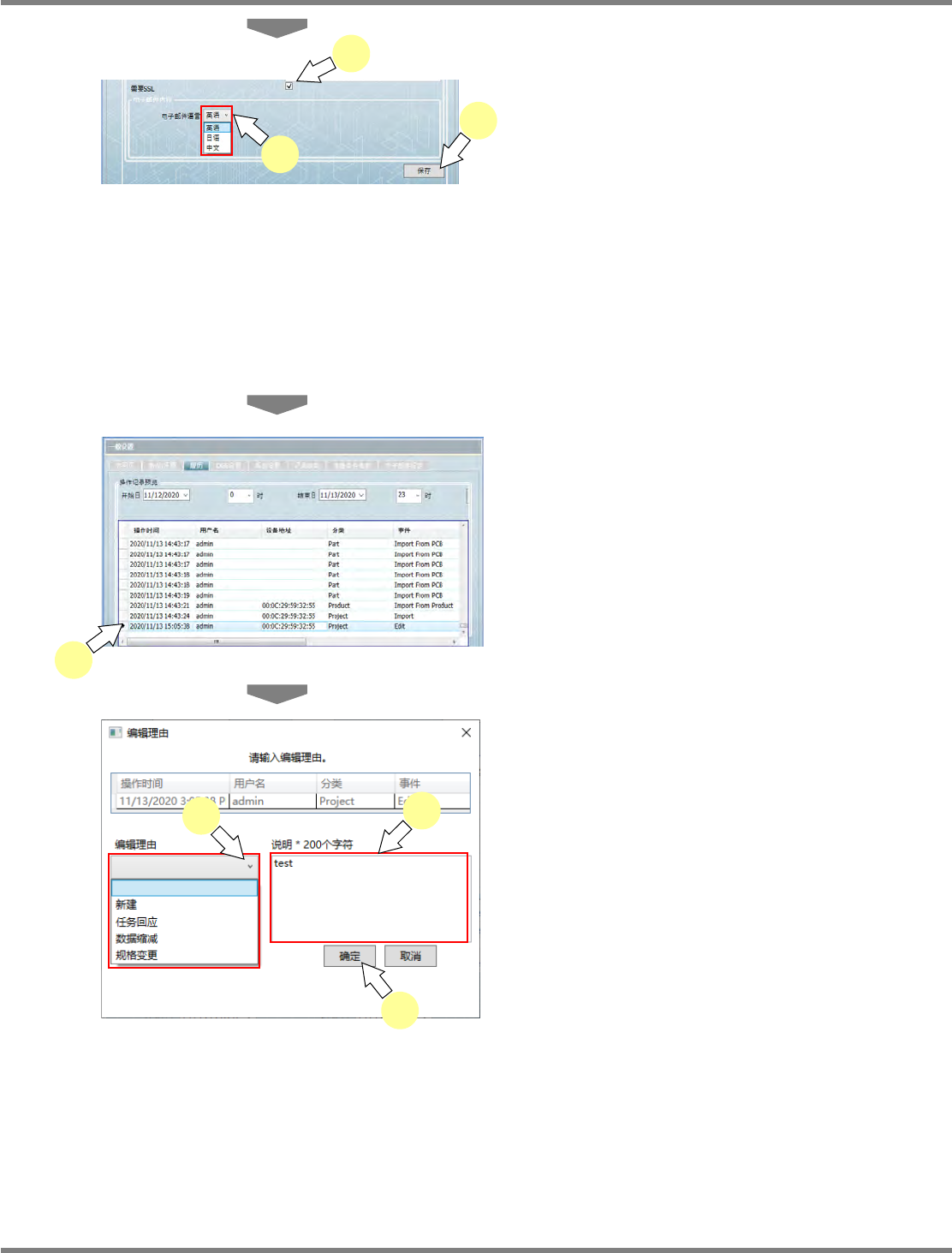的操作纪录画面上登录了更改理由,便可自动向设