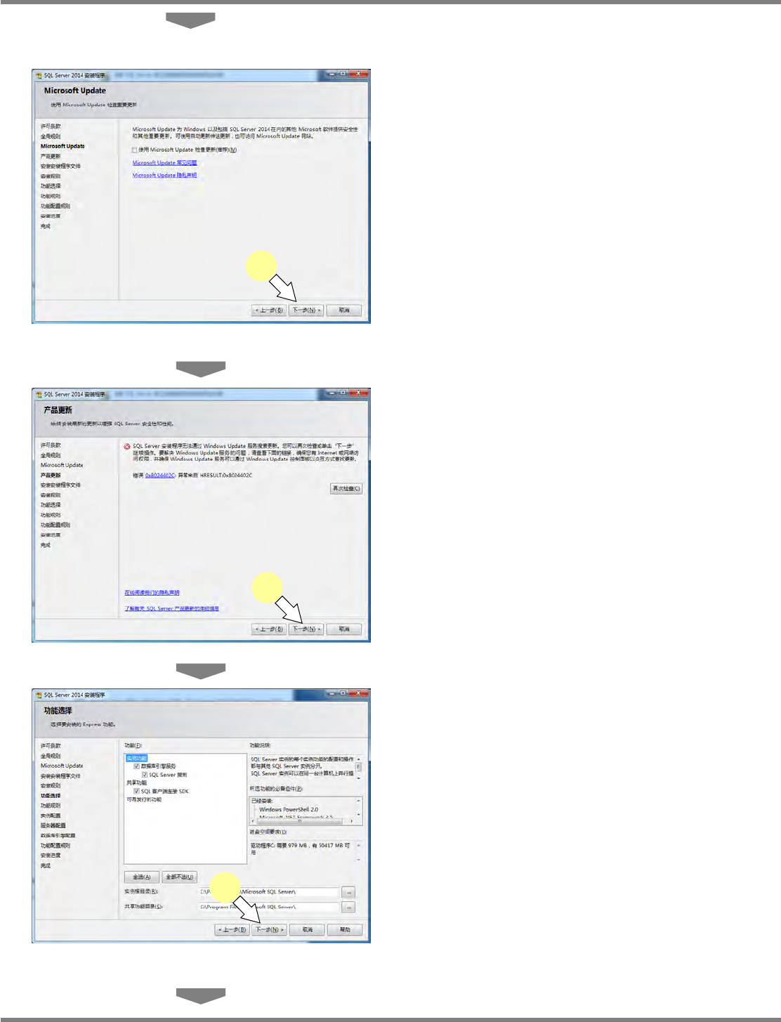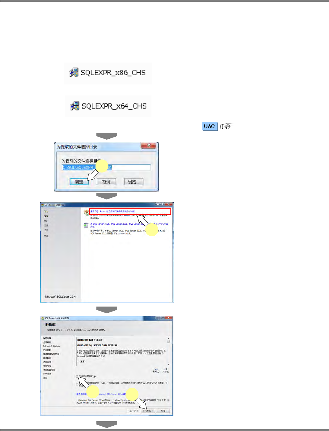 NPM-DGS 程序手册 安装以及设定 EJS9AC-MB-02P-21 Page 2-29 2.1.7 SQL Server 2014 的安装 Microsoft SQL Server2014 SP1 Express 的安装 SQLEXPR32_x86_CHS.exe (32 bit 版 ) 不可安装到 64 bit OS 上。 1 ‘Microsoft SQLServer 2014 SP1 Express’ 安装程序。 32…
