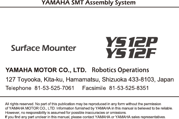 just a YAMAHA surface mounter (or related machine) and off-line PC nor can accept responsibility for problems