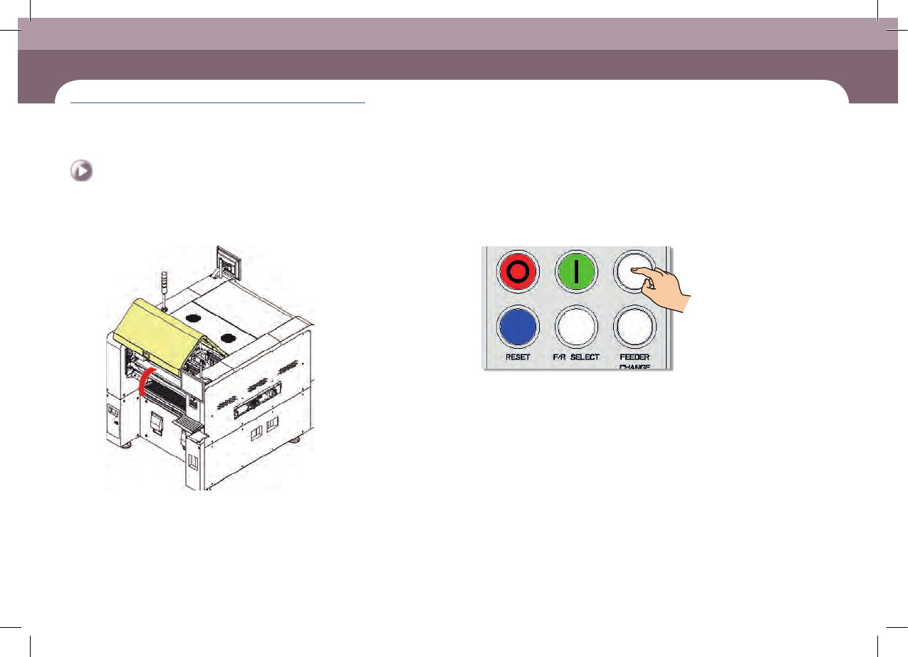 DE CAN S 1 Op e ra tio n Ha n db oo k 3-1 9 Chap ter 3 本 Chapter 主要介绍生产作业顺序 生产 Nex t Generation, Multi - Functi onal Placer 准备生产 Ⅱ > 布 置B ack up Pin 准备生产※Ⅱ Step 5. 关闭 前/后安 全 门 Step 6. 按 ' R E A DY ' 按钮