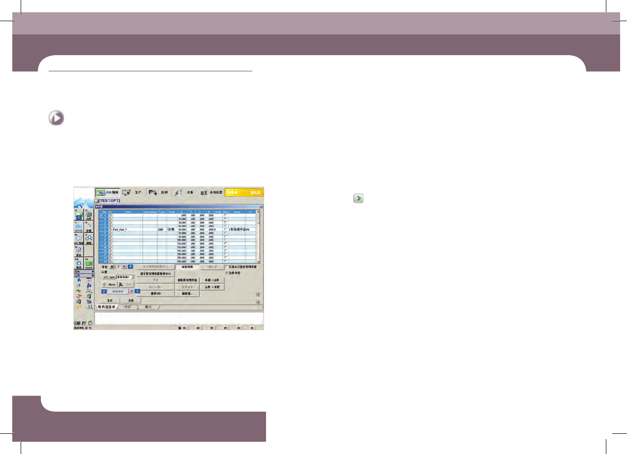 DE CAN S 1 Op e ra tio n Ha n db oo k 3 -2 3 Chap ter 3 本 Chapter 主要介绍生产作业顺序 生产 Nex t Generation, Multi - Functi onal Placer 准备生产 Ⅱ > 检 查位置及示教 准备生产※Ⅱ 4. 检 查 贴 装 点( Placement Point ) Step 1. 检查 PCB 的贴装 点 ① 1. 在 "P…