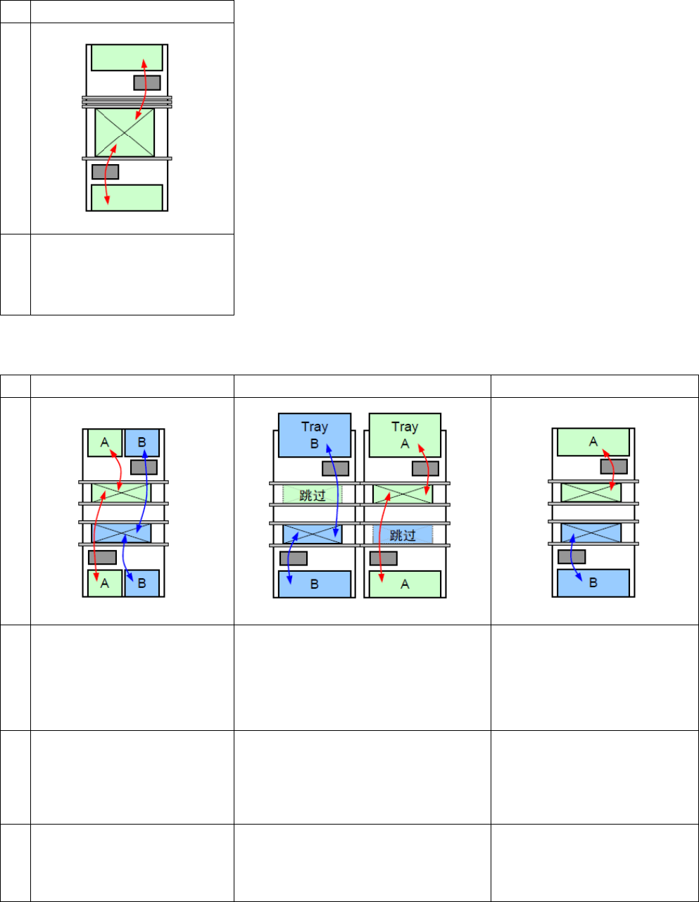 NPM-WX / WX S 20 24. 0718 - 22 - 3.3 实装模式 ■ 单轨 交替实装模式 形 态 动 作 贴装头交替动作,进行 生产。 ■ 双轨 通过双轨前后 贴装 头的动作形态,有 3 种实装模式。 交替实装模式 交替 ( 前 / 后 ) 实装 模式 ※ 1 独立实装模式 ※ 1 形 态 动 作 各贴装头对两条轨道的 基板进行生 产。 贴装头交替动作, 一条轨道的 生产完成 后,进行另一条轨道的 生产。 <交替前实装…