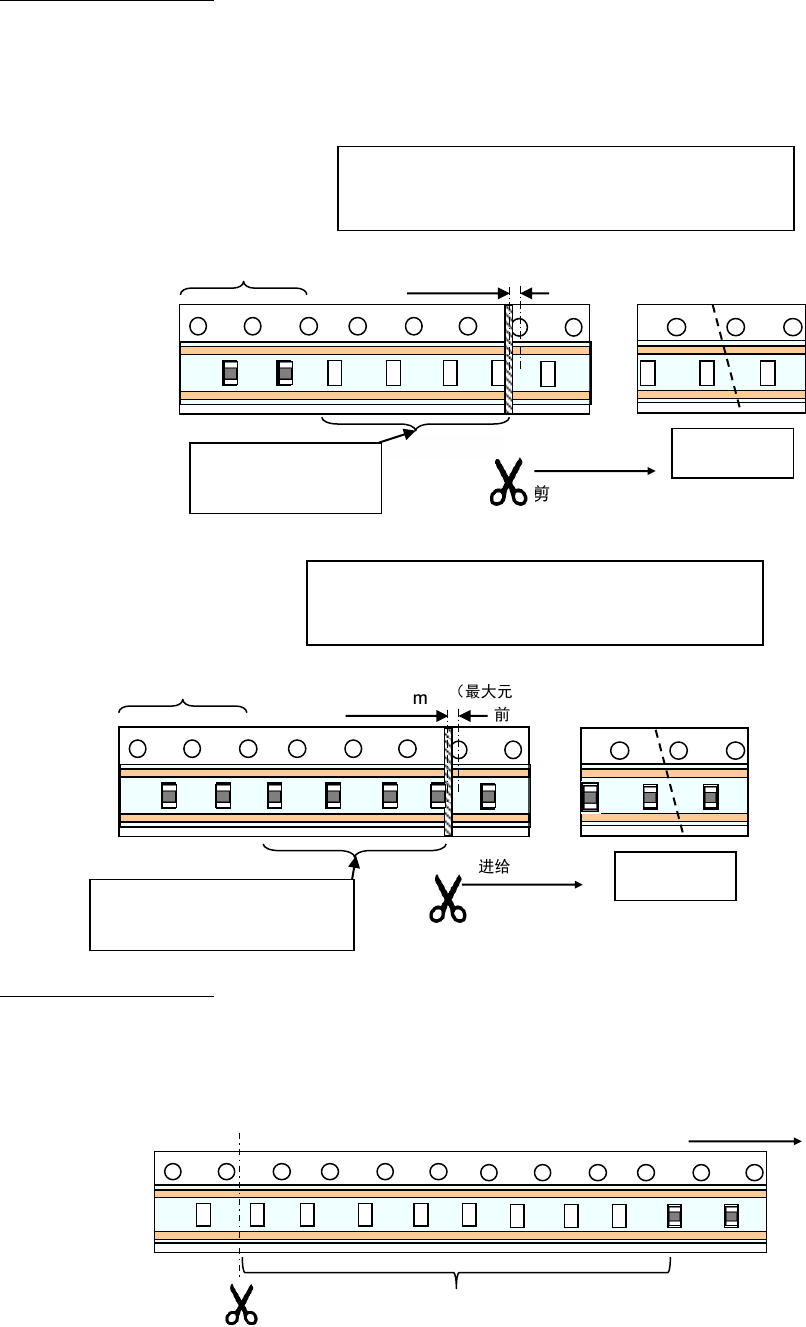 编带插入自动供料器前,请按照下图所示位置,用剪刀剪断编带引导部。