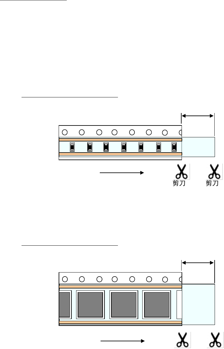 ② 封盖带请在载料带前端如下所示的突出位置剪断。
