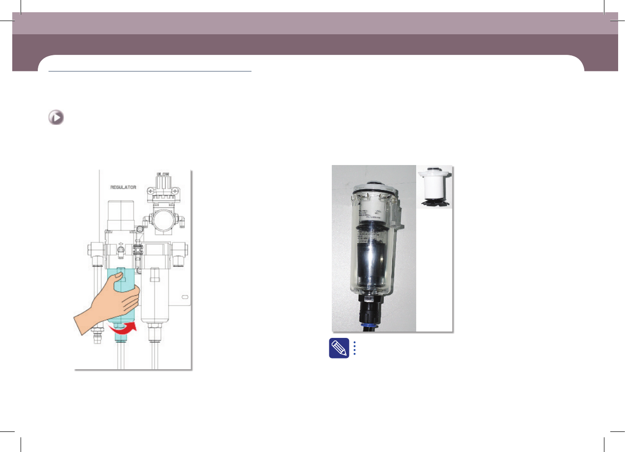 DE CAN S1 M ain ten anc e Ha nd boo k 3-1 0 chapt er 3 Daily Inspe ction Nex t Generation, Multi- Functi onal Placer Checking and replacing the air filter Daily Inspection Clean the dust from the air to prevent machine f…