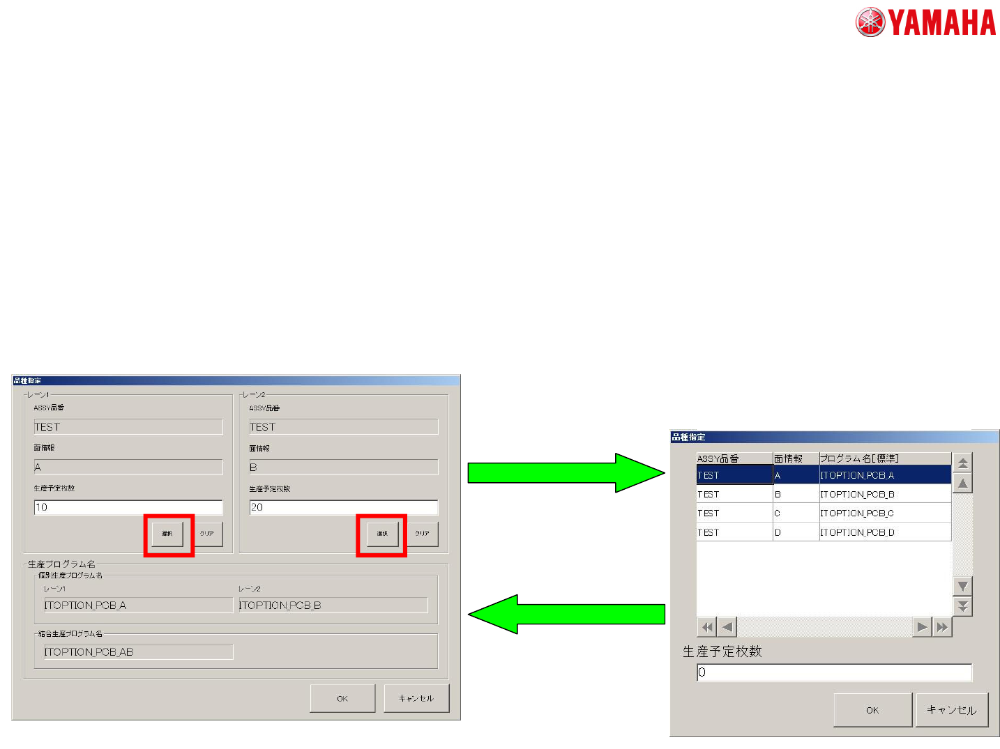 品種指定段取りでは、レーン毎に品種・生産予定枚数を指定します。