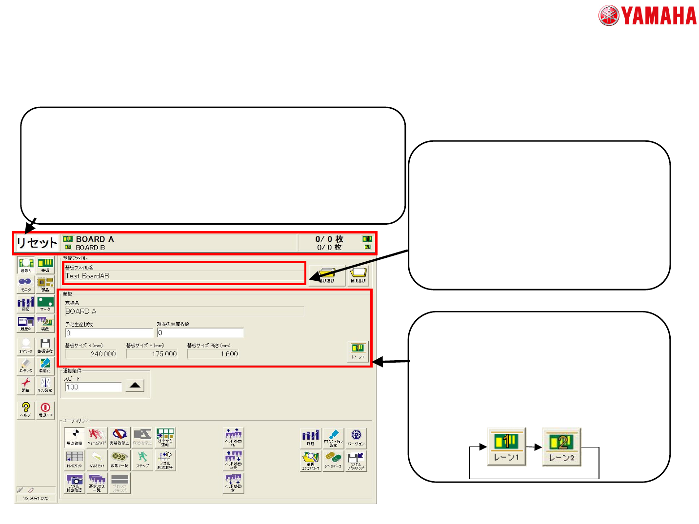 全画面を通して、ボタン・コンボボックスで選択されている方のレーンの基
