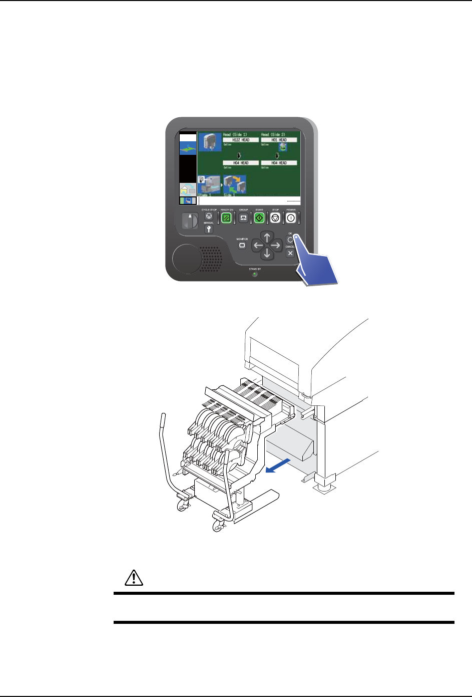注意不要使贴装工作头碰到线性标尺。否则,贴装工作头将变得无法使