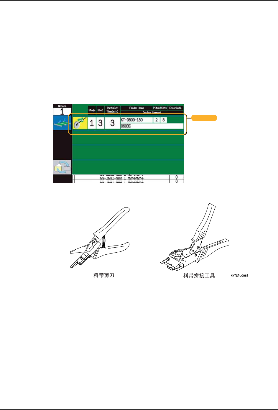a. 因为在 KIT Handy 上显示出需要执行料带拼接的所有供料器的位置,所以单击要进