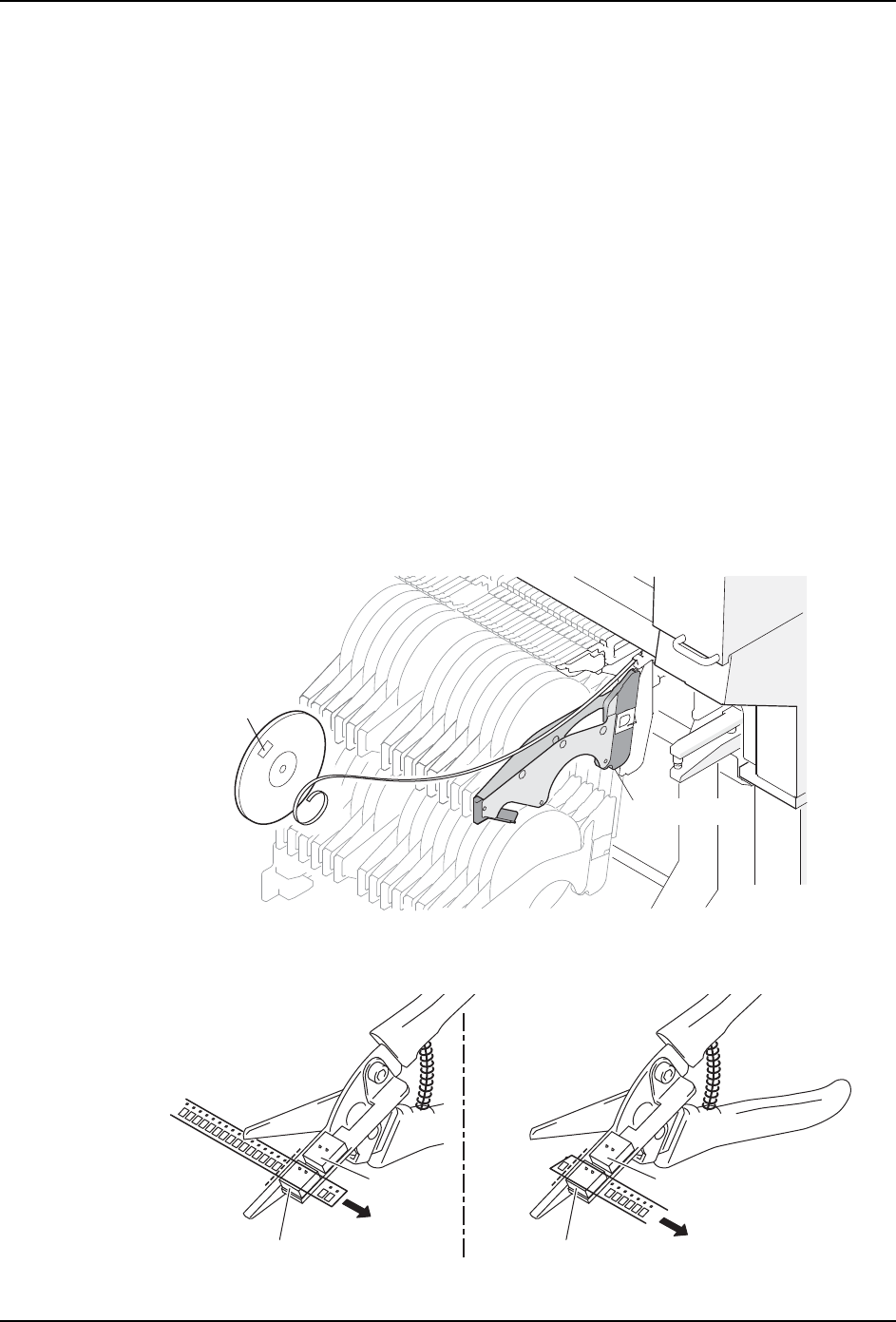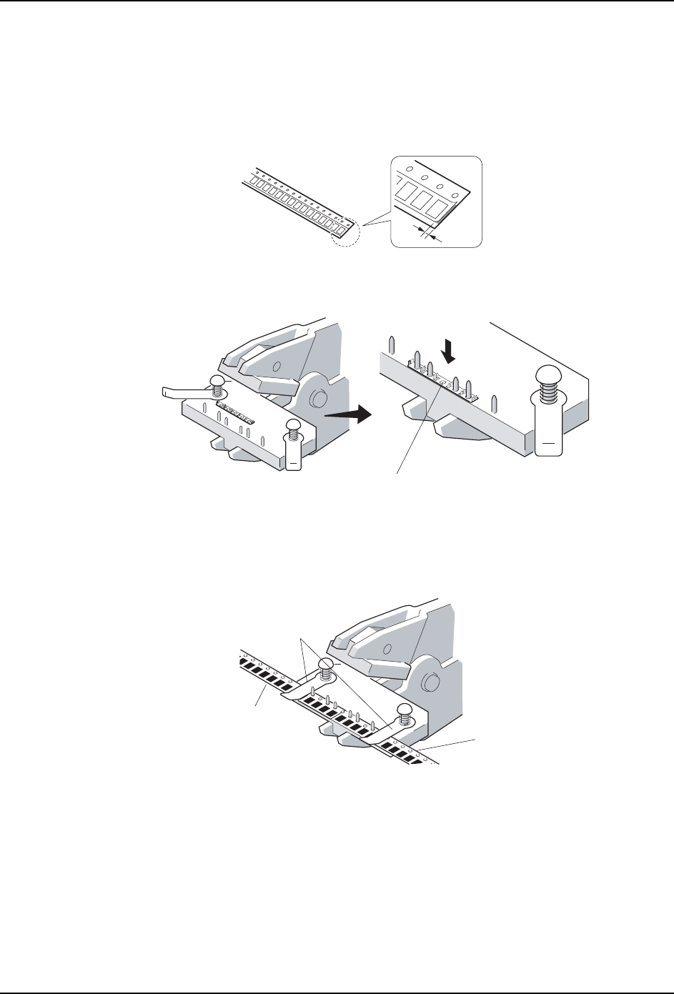 4. 在新料带上的最初元件的前面与料带间距相吻合的适当位置处剪断料带。在剪断料带