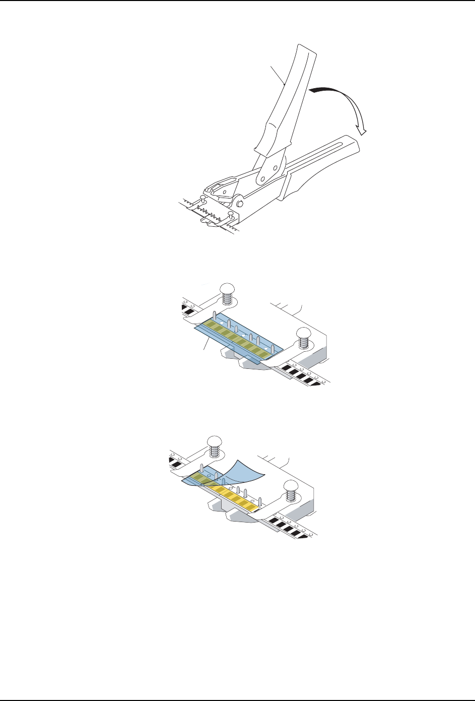 8. 用力握紧料带拼接工具的手柄,通过料带拼接芯片连接双方的料带。