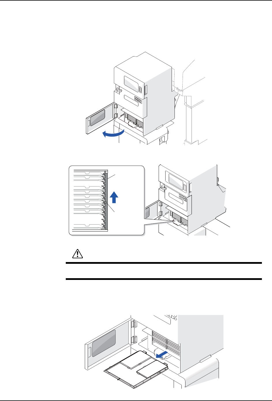 1. 打开料盘单元 -LT 的正面门 . 请打开下层的门。