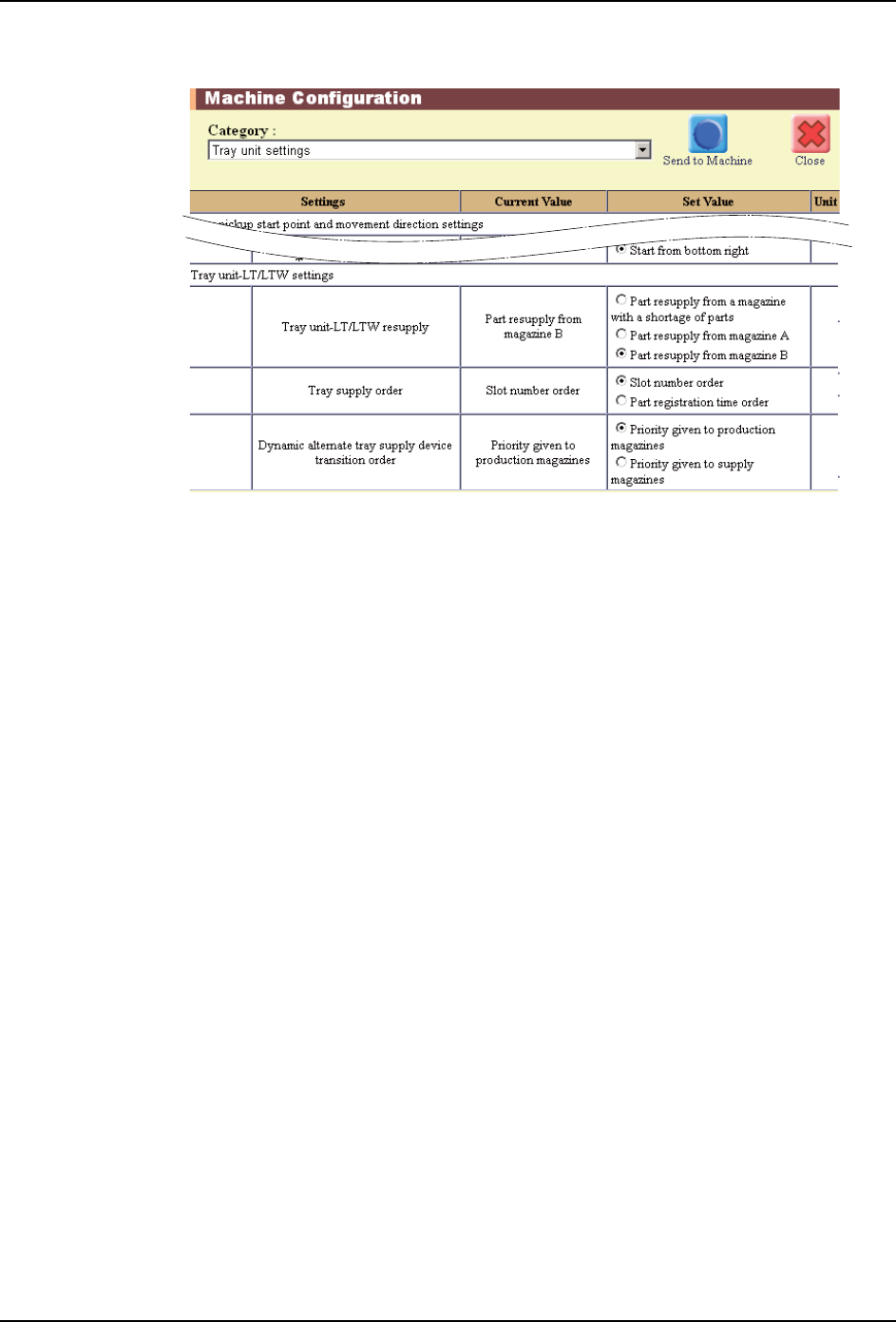 SYS-AIMEX-9.0S 9. 各种功能的设定和管理 AIMEX 系统手册 271 3. 进行料盘单元功能的设定。 · 「料盘单元 LT/LTW 补充动作设定」 : 「从料盘箱 A 开始补充」或者 「从料盘箱 B 开始补充」 · 「料盘供給順序」: 「料槽号顺序」 · 「料盘动态次料站补充的料站移 动顺序」: 「生产料盘箱优先」或者 「补充料盘箱优先 」 备注 ) 1.使用移动顺序 A 时,可以进行任何 一种设定。 2.设定料盘供給…
