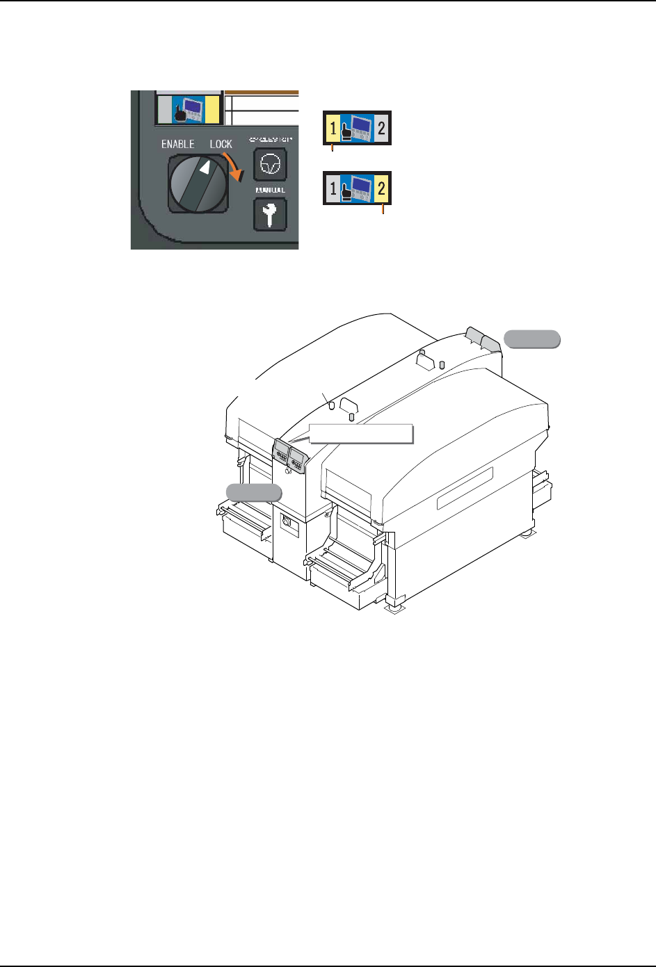 想要保持操作权时,请将 ENABLE/LOCK 开关旋转到 LOCK 侧。