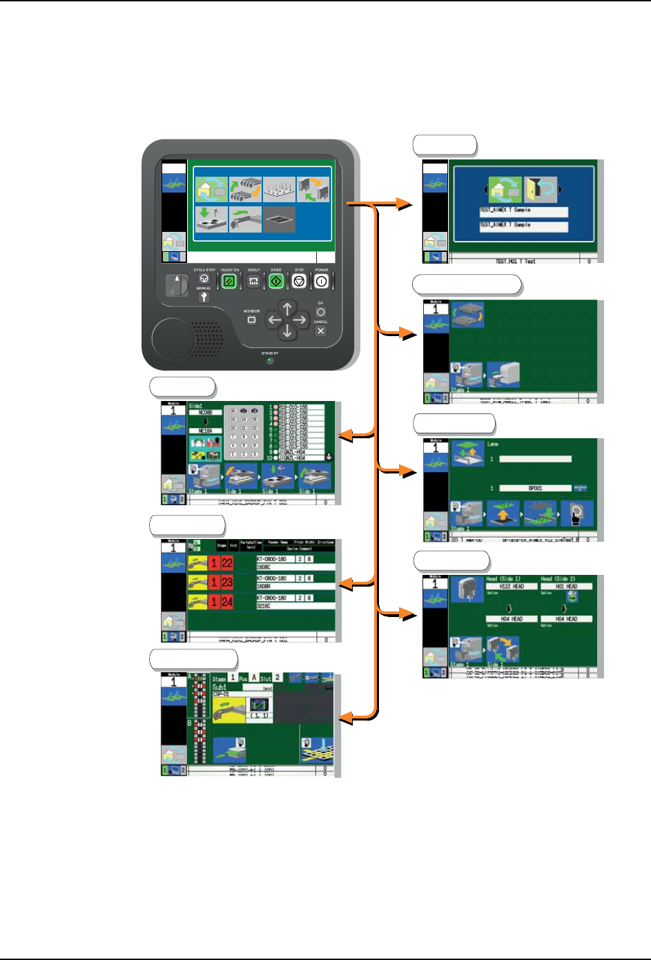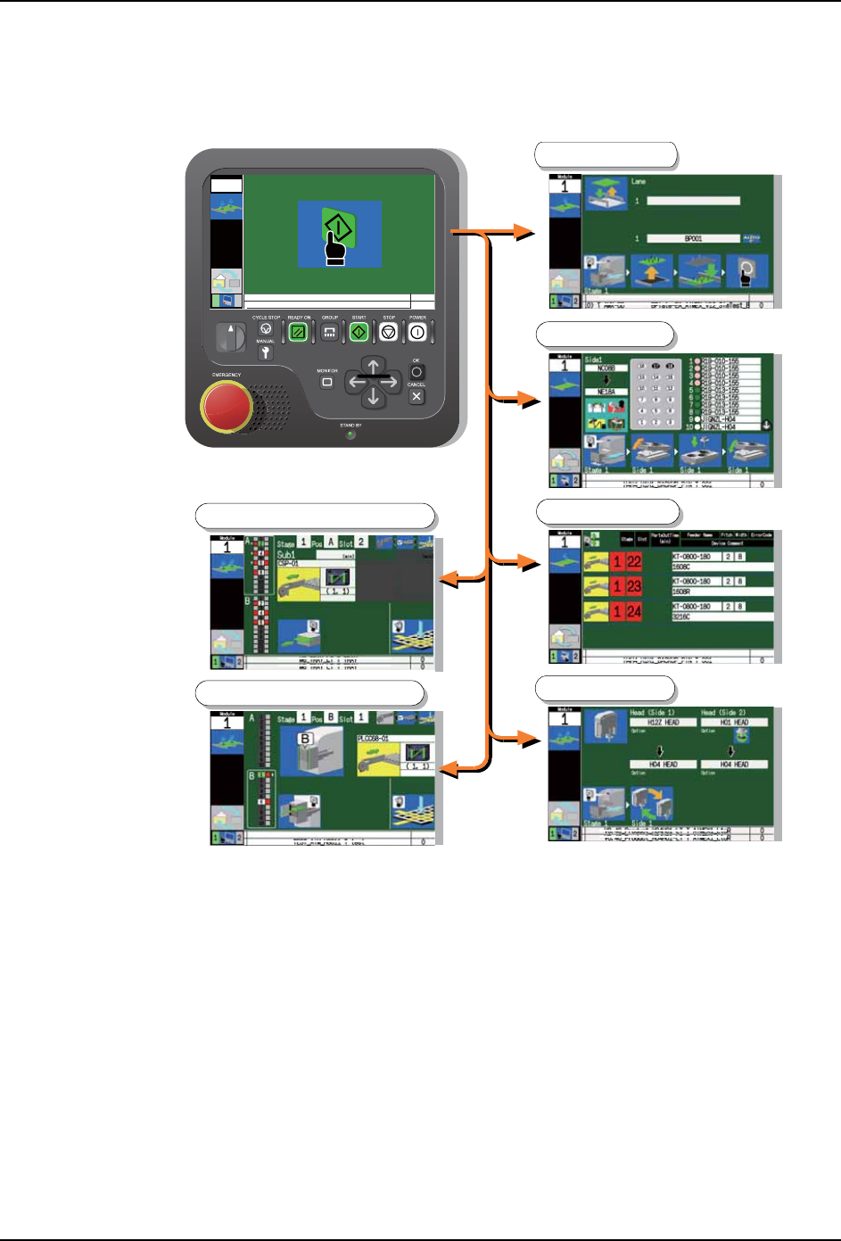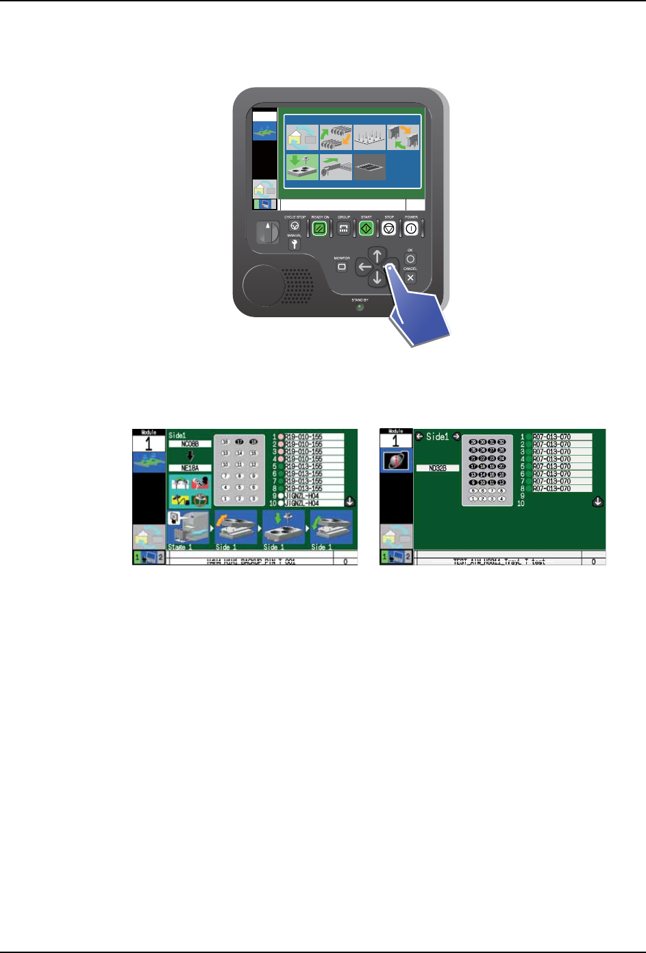 按下 START 按钮后,机器开始校正如果生产准备没有齐备,操作画面上显示单元或元件的