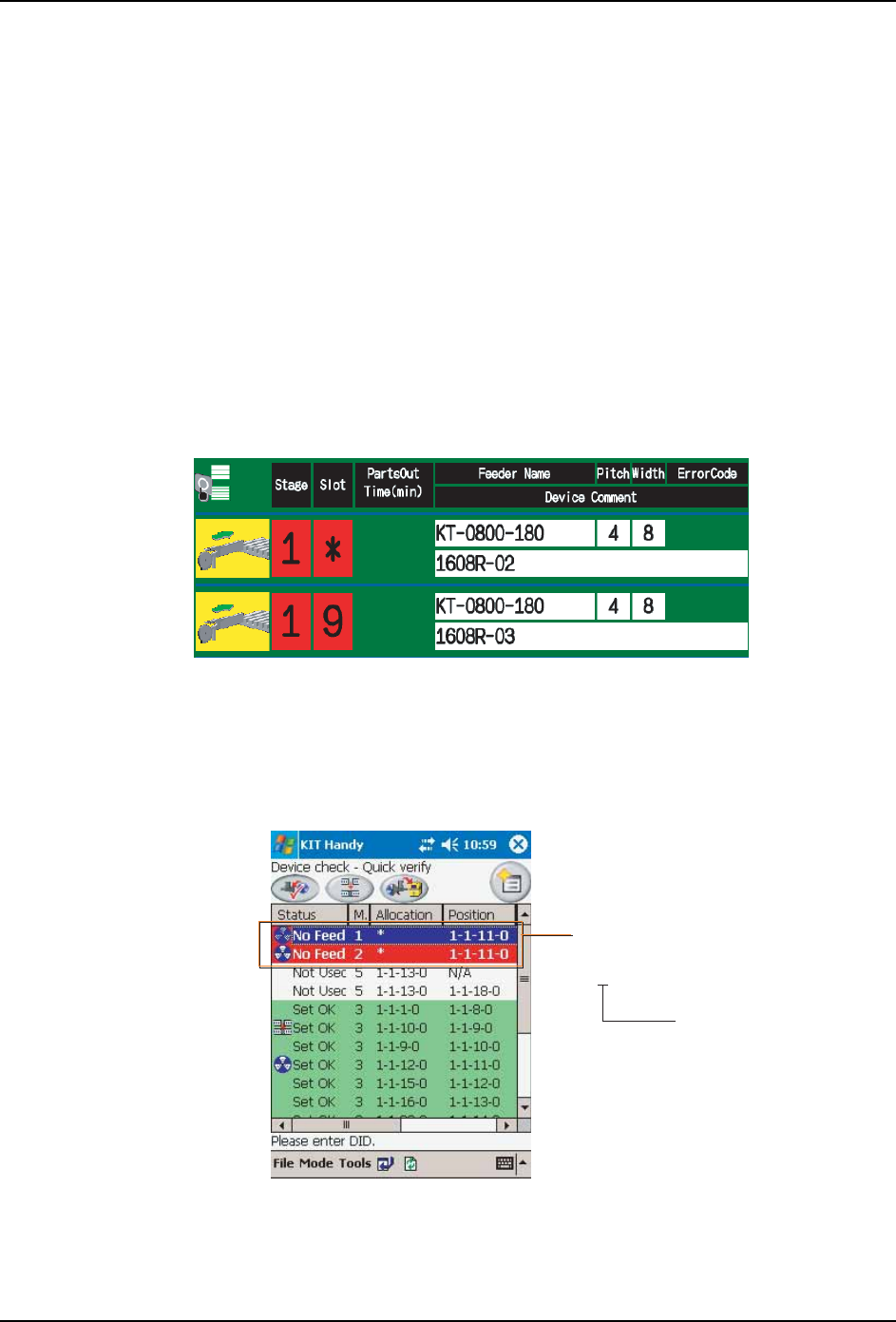 2. 请确认 KIT Handy 或 KIT Manager 的画面,请指定被显示为 [No Feeder] 的料槽并进行