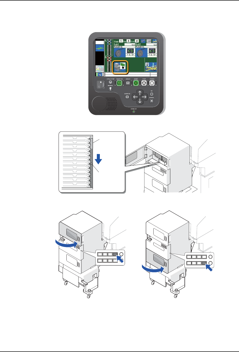 备注 )想要改变料槽的顺序时,请通过操作面板的箭头键(上下)变更料槽,然后安装料盘。