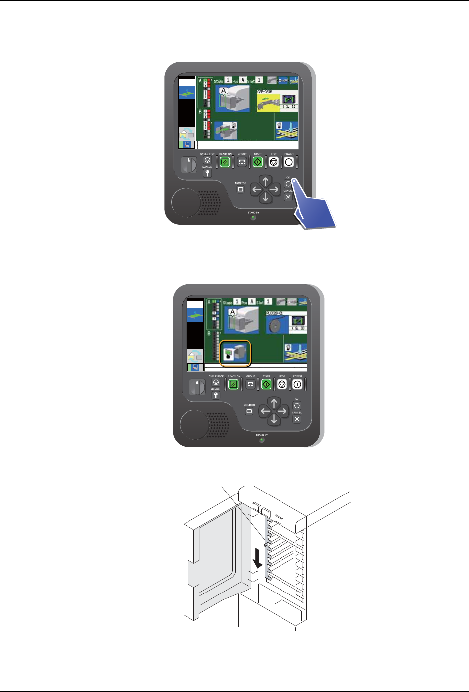 请将要进行料盘安装的一侧的操作权变成有效,然后进行以下的作业。