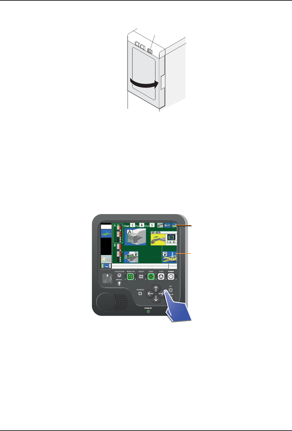 1. 请在显示料盘更换向导画面的状态下,按下箭头键 (向右)。