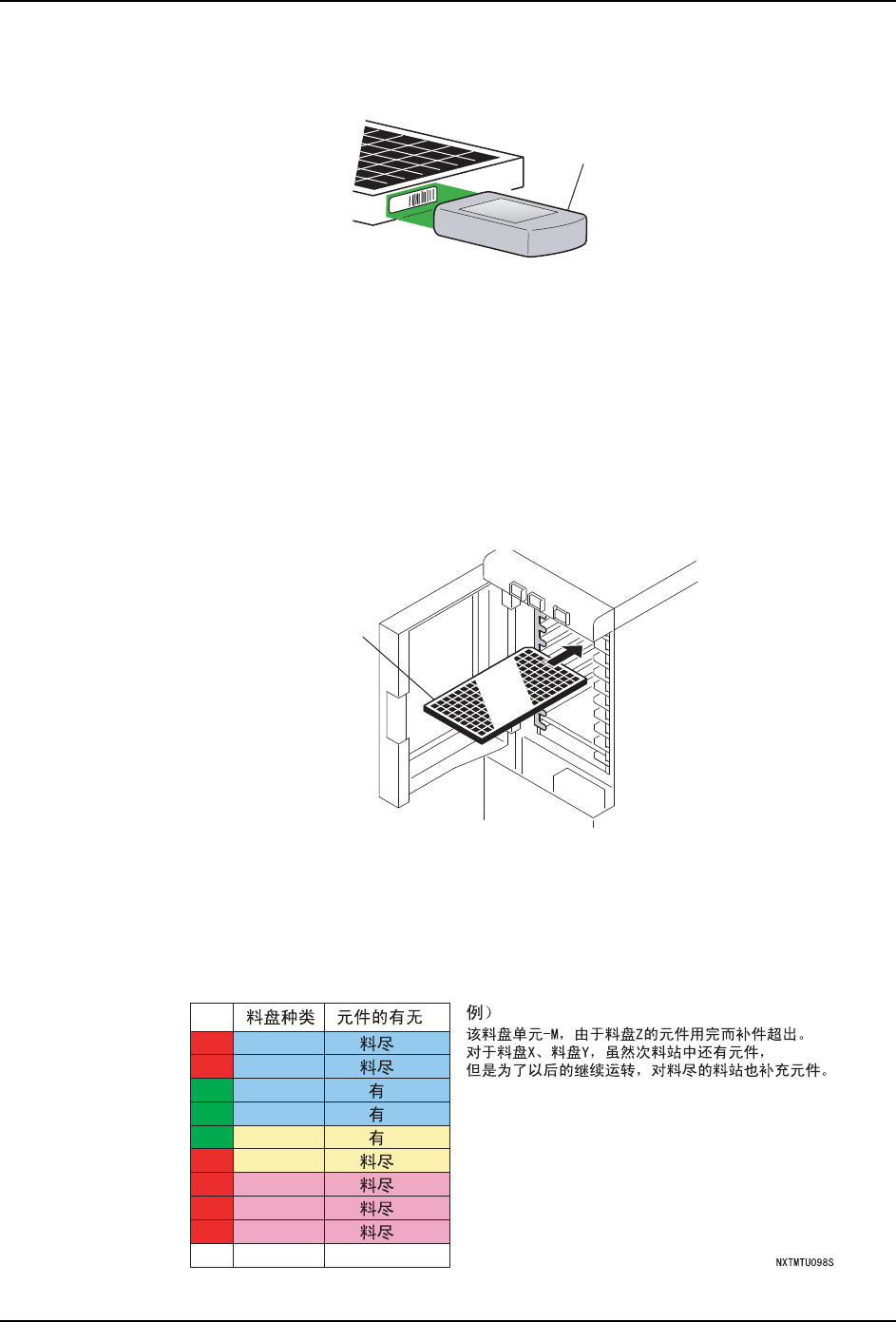 备注 ) 将料盘插入料盘箱时的注意事项,请参照 "4.7.4 插入料盘时的注意事项 "。