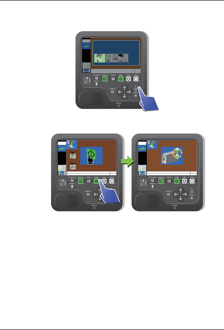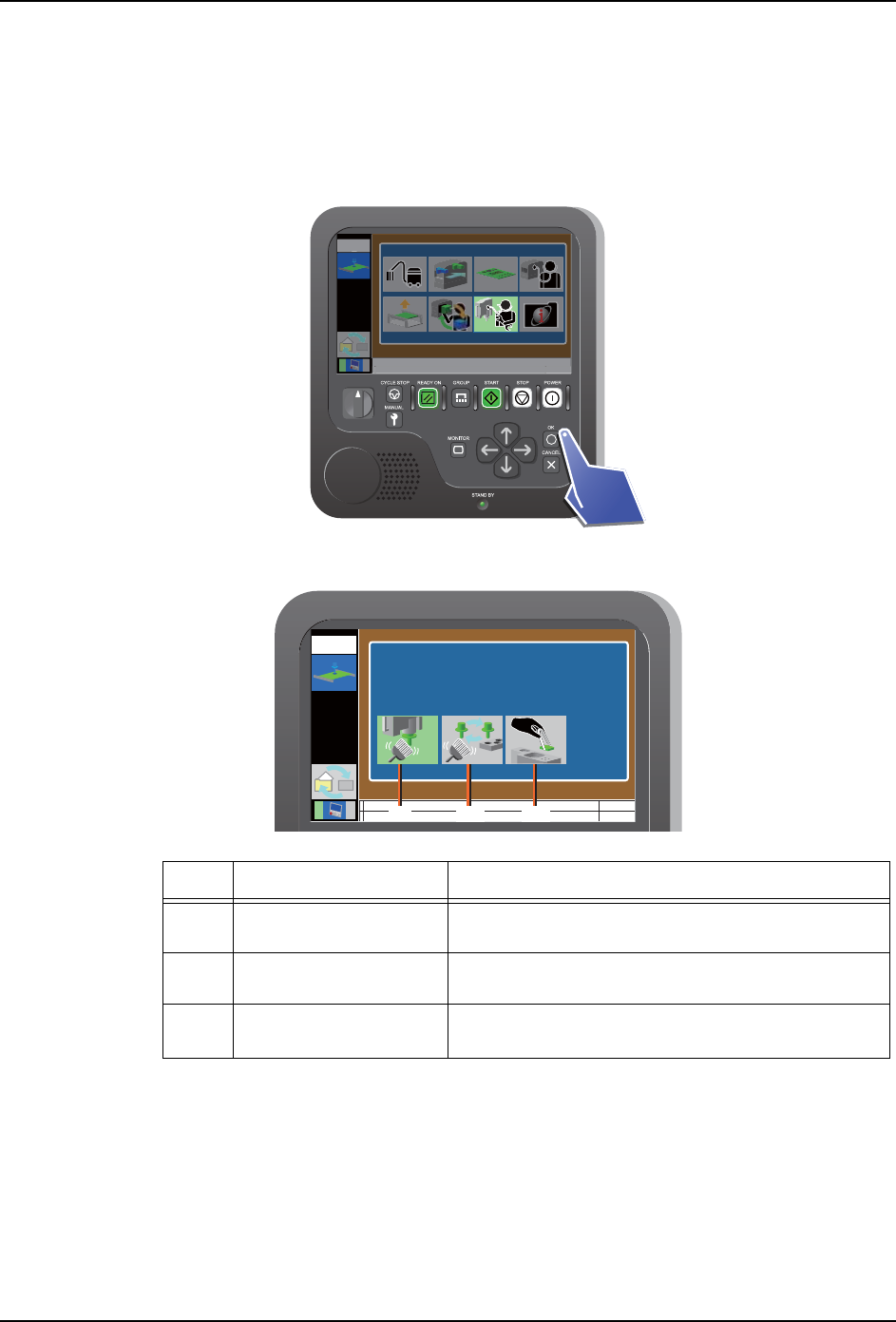 备注 )在执行指令期间,显示机器动作中的示意图。当完成指令后,就会返回到工作头调整