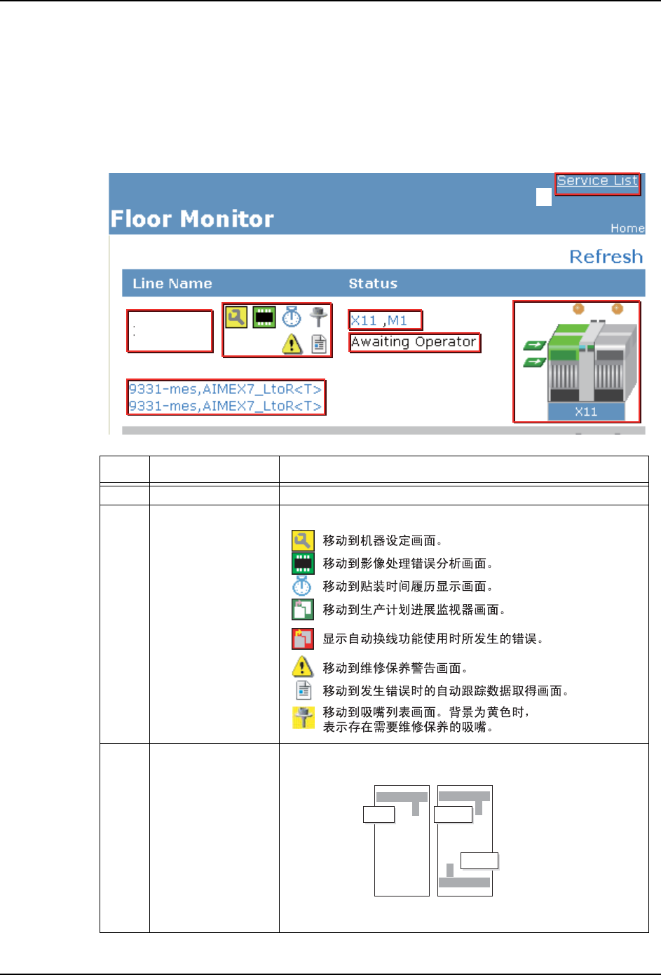 7 服务一览表 显示服务一览表。在线监视器中显示的生产线构成与实际的生