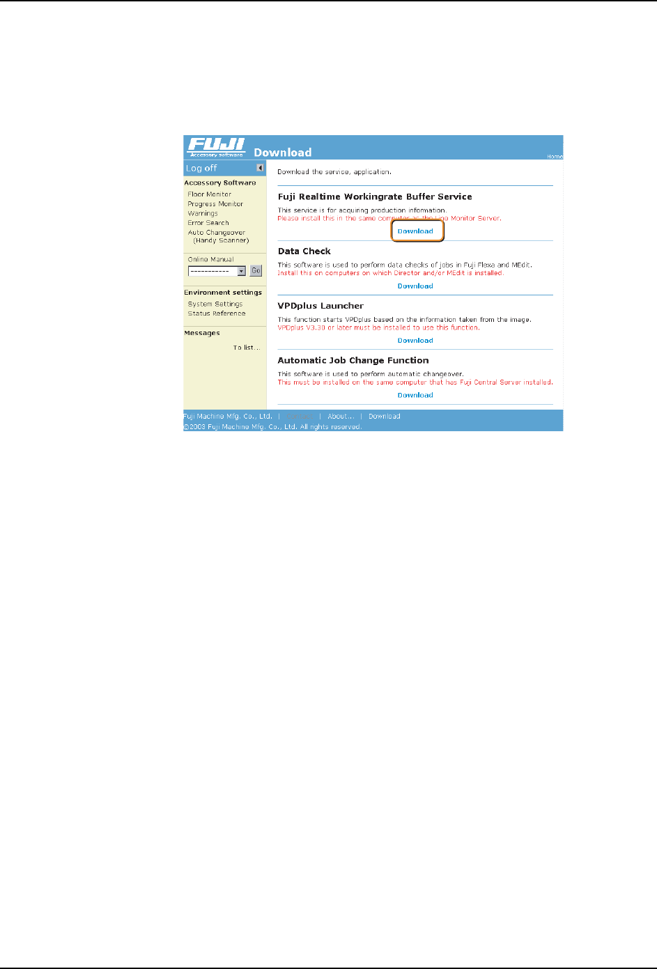 2. 「Fuji Realtime Workingrate Buffer Service」项目中单击 [Download] 会开