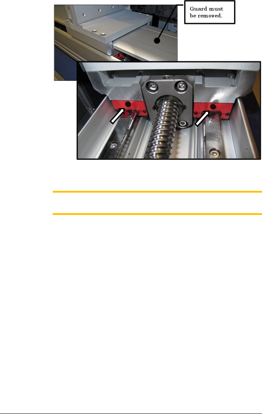Figure 67: Two of the four grease ducts on the rear linear guide of