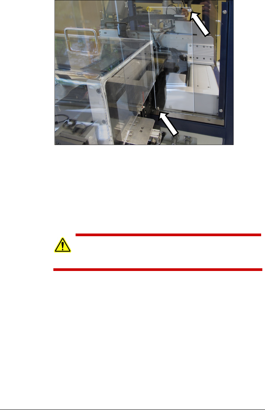 Figure 23: The Tray Feeder mounting screws (arrows). There are