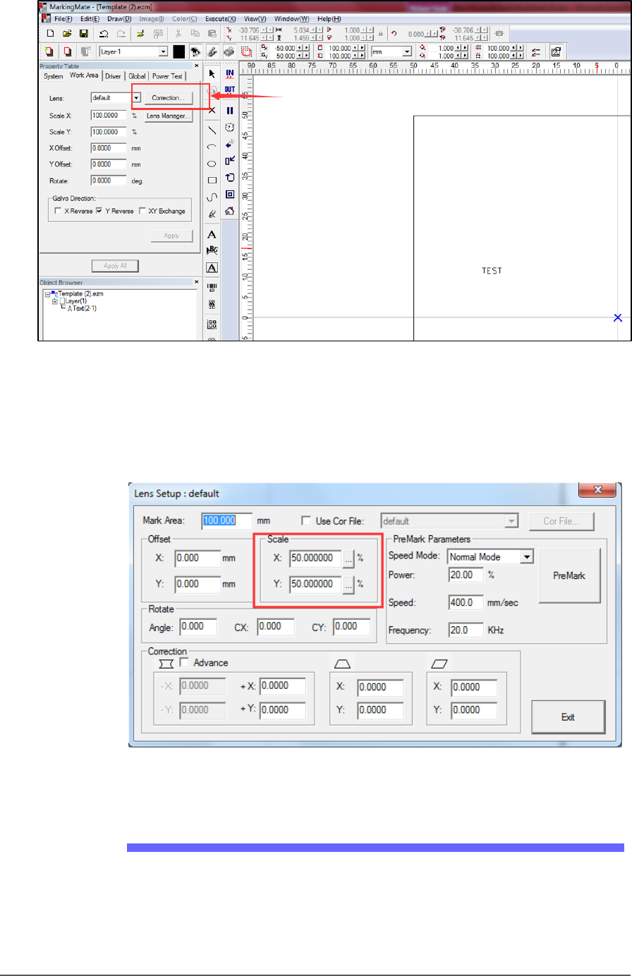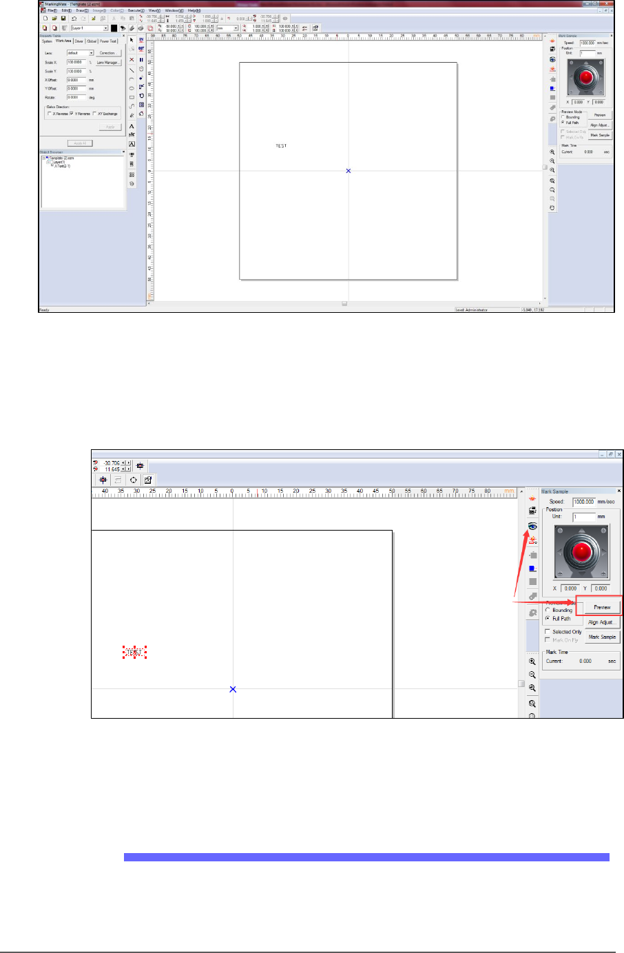 d. After setting the proper positions, click Laser Mark to check