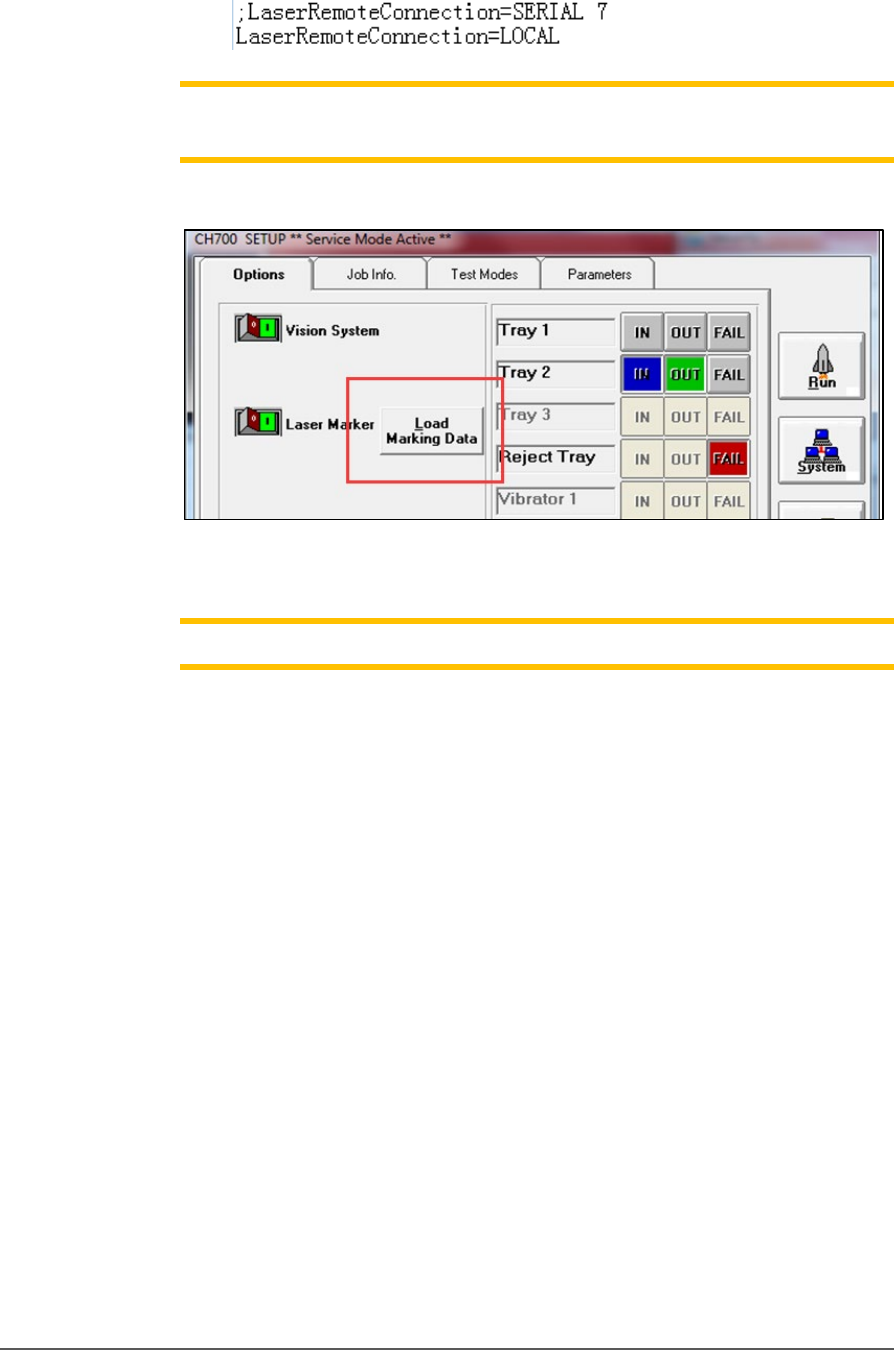 Figure 34: The Load Marking Data button in the CH700 Setup window