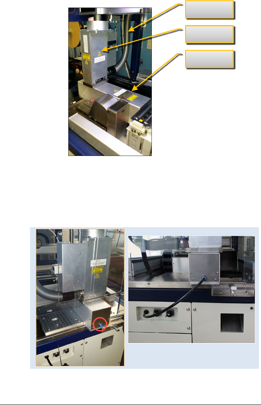 Marking Option ≡ Install ing th e Laser Shutt le Mod ule PSV5000 O wner ’s M anual - 83 - Figure 47: Lase r Shuttle fa steners are on the u nderside a t approx imately the two circled lo cations (nea r side only shown …