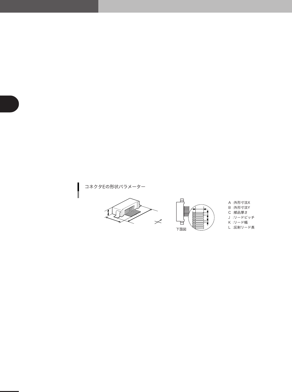 3- 39 3 4. 部品情報を作る ■ 簡易 BGA の 場 合 A, B: 外形寸法 X Y ノギス、マイクロメーターなどで計測した正確な値 (mm) を入力してください。 C: 外形寸法 部品厚さ ノギス、マイクロメーターなどで計測した正確な値 (mm) を入力してください。 D: BGA 端子総数 部品上に存在する端子の総数を入力します。 E, F : BGA 端子列数 N E NE そ…