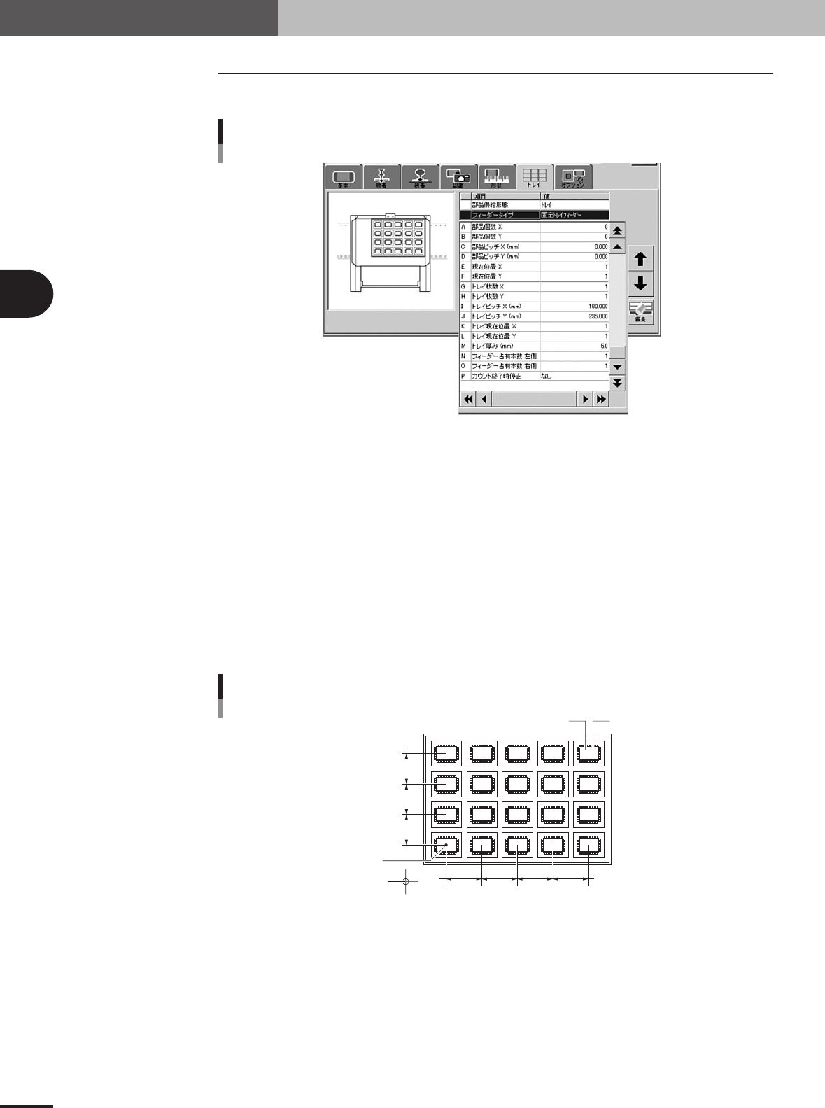 トレイの X、Y 各方向に存在する部品の個数を設定します。図のようなトレイの場合、部品個数