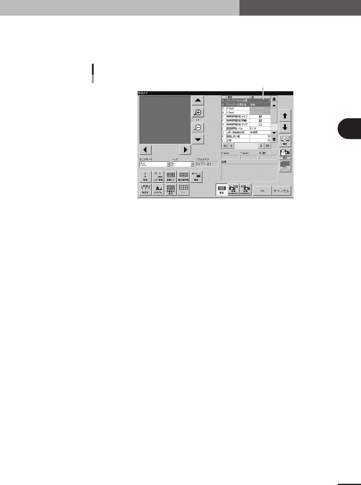 この項目はフィーダーセット位置未定の部品のみ設定してください。調整項目の