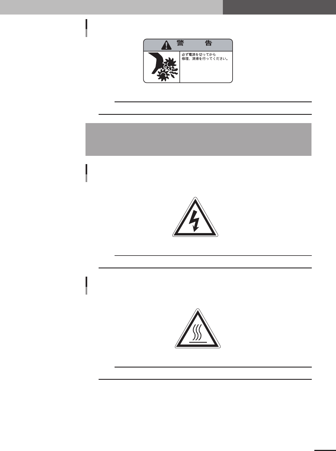 機械には警告ラベルが貼られていますので、内容を確認して指示を必ず守ってください。ここで