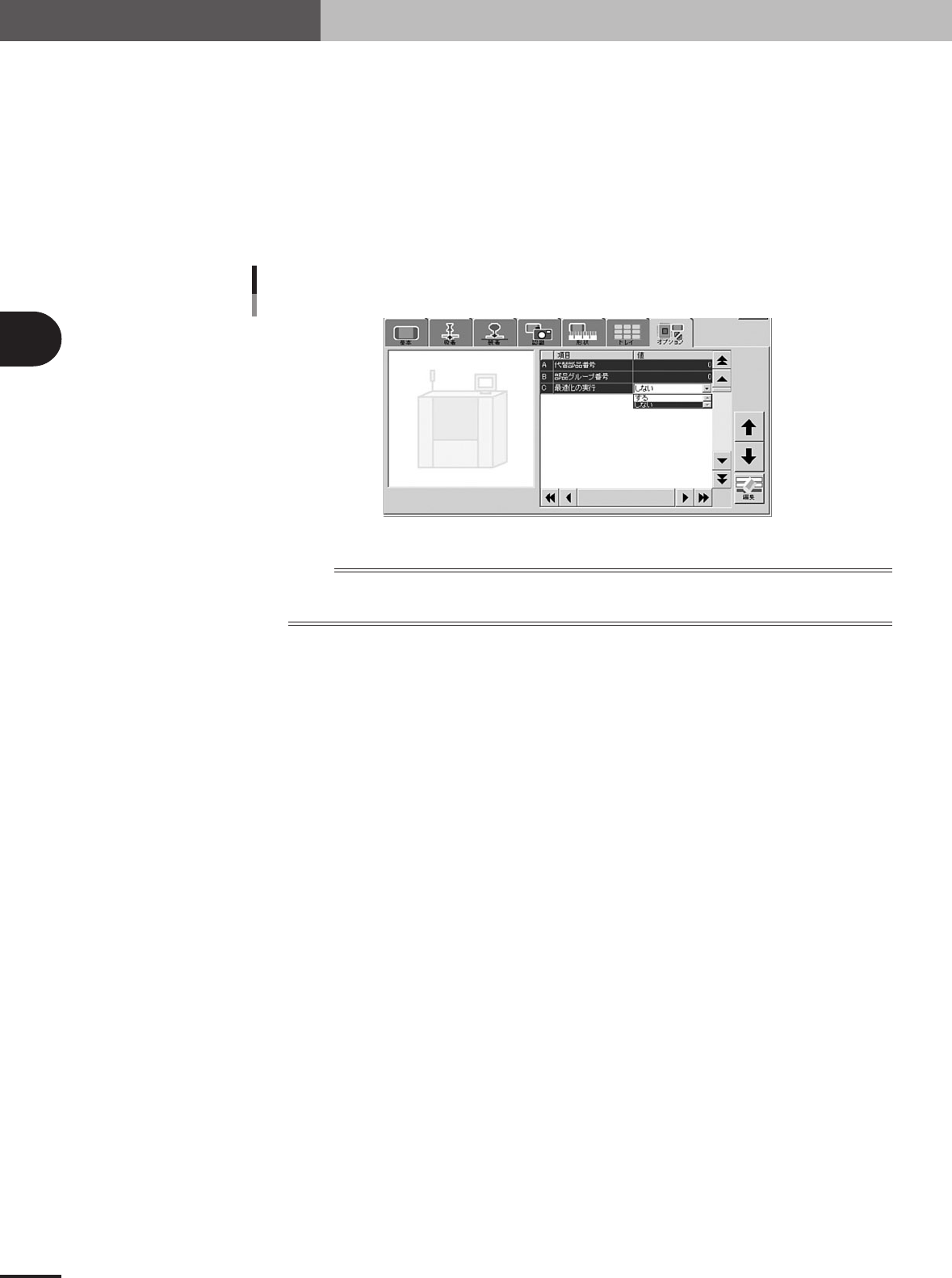 「オプション」タブ画面を開き、「最適化の実行」を「する」あるいは「しない」に設定