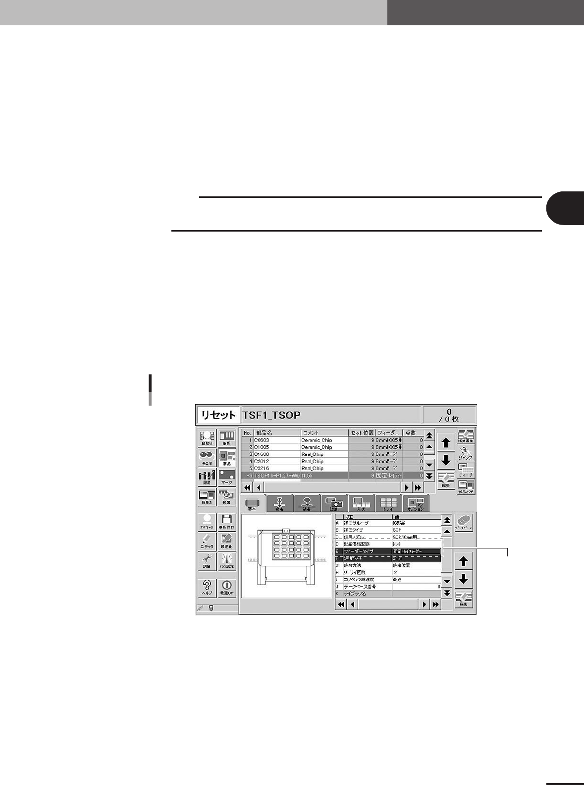 トレイシャトルフィーダー(以後 TSF1 と呼びます。)を使用する部品に対してのみ、次の設定を行