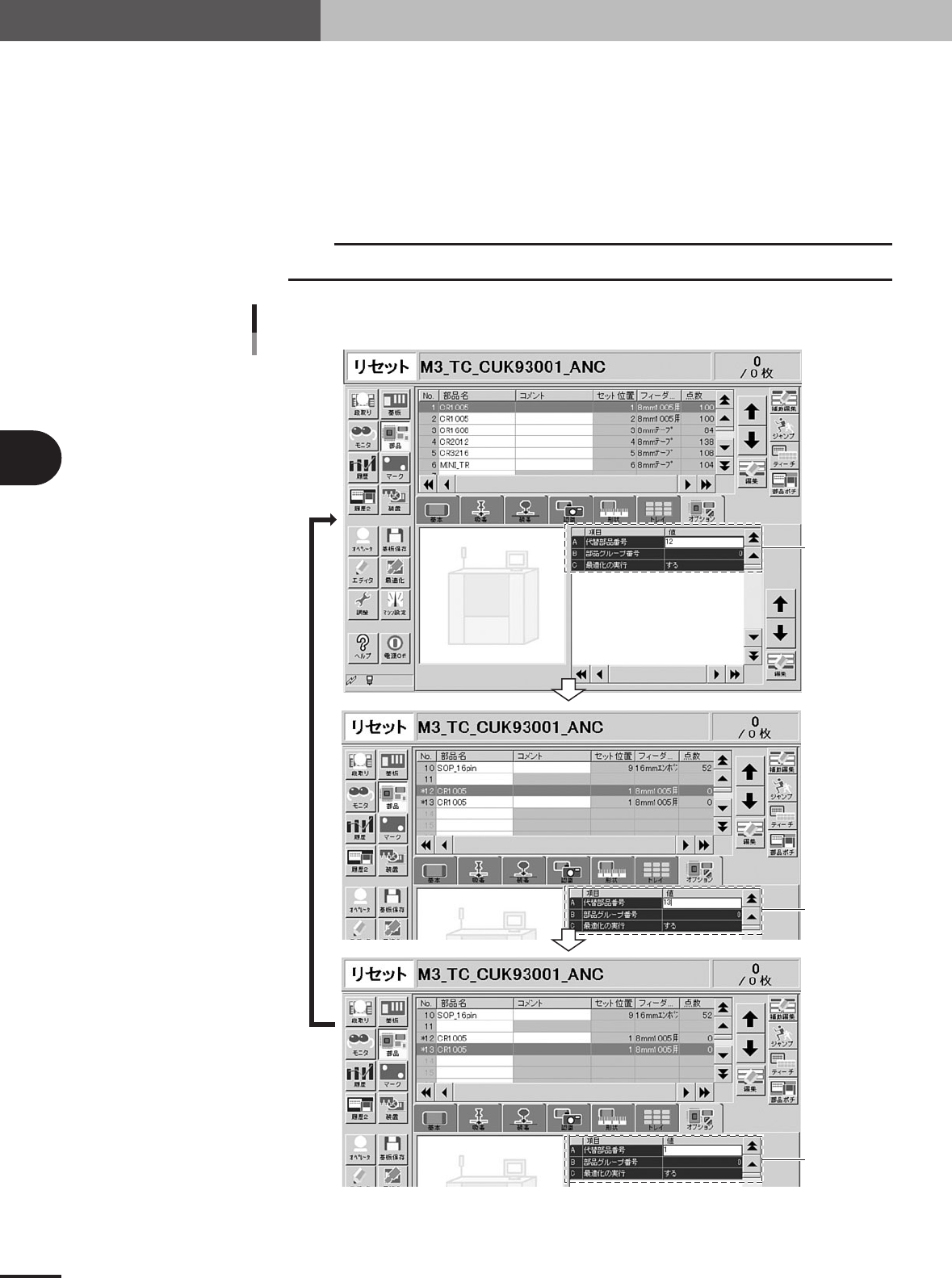 す。マシンにセットする代替部品のフィーダー番号を入力します。