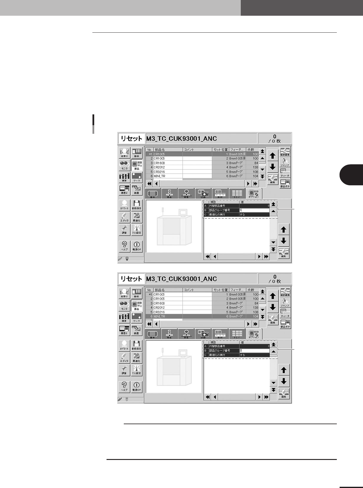 部品搭載時に搭載順序の指定が必要になる場合に使用します。使用目的としては下記のような例が