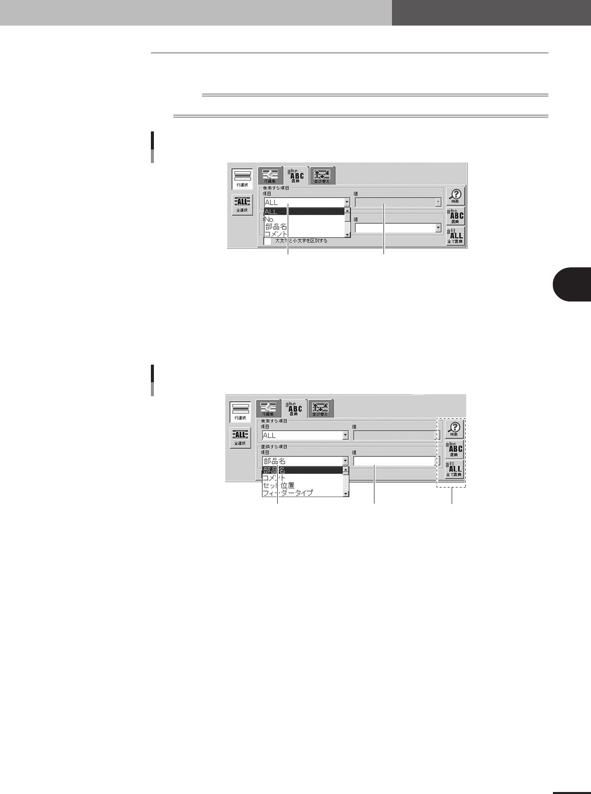 ■ 置換用「項目」ドロップダウンリストボックス
