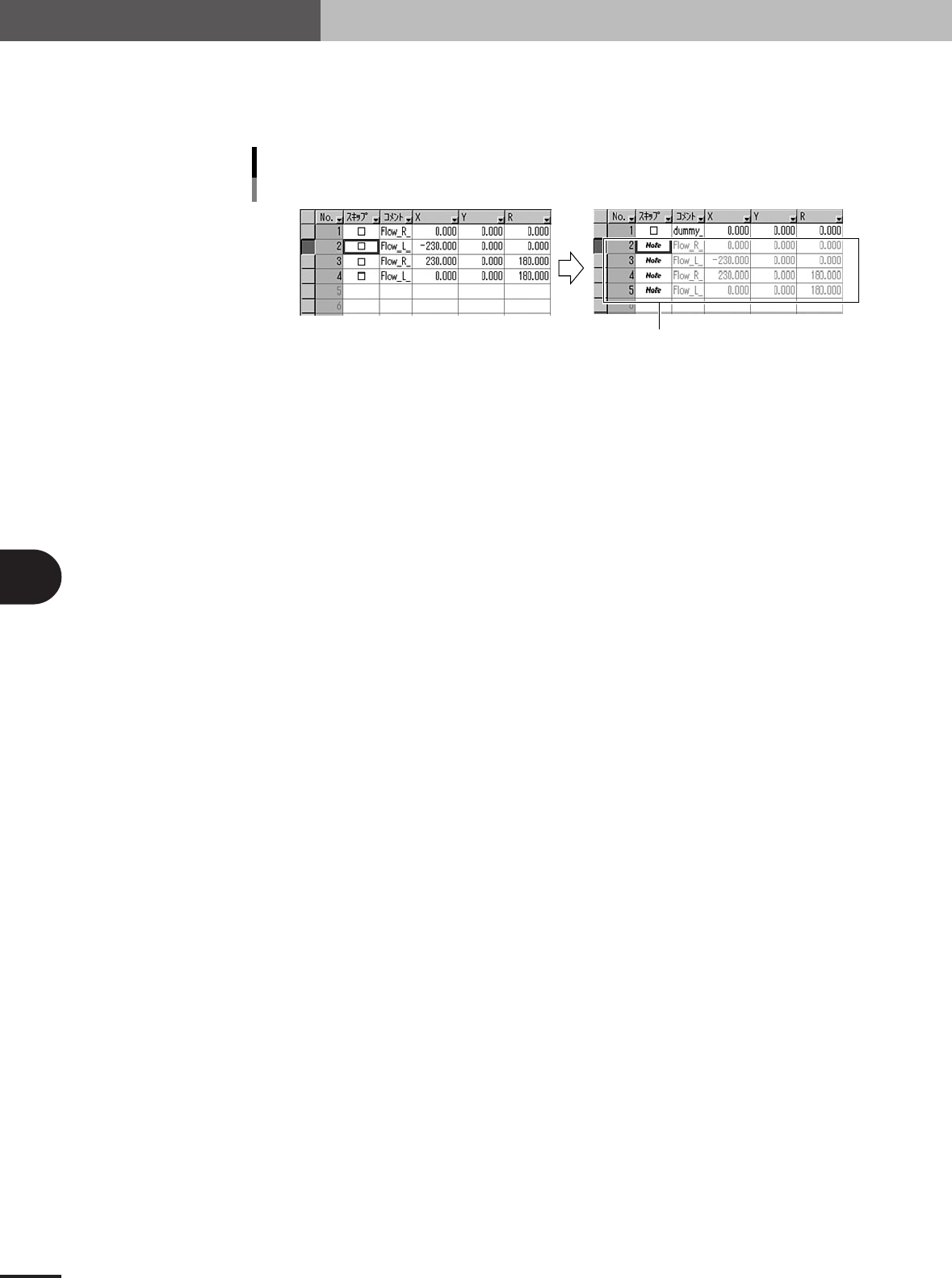 「展開 (参考あり)」を選択した場合、ブロックオフセット展開前のデータが「Note」 (参