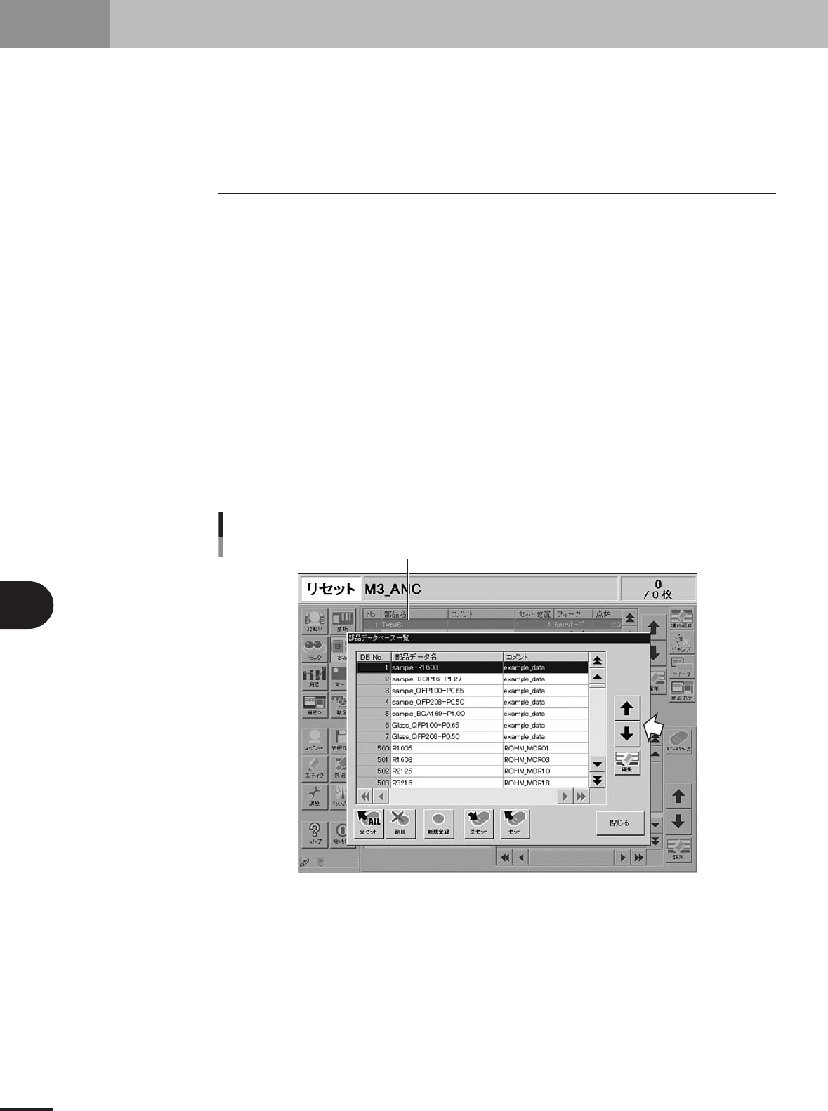 「段取り」画面を開き、[基板選択]ボタンでデータを選択してください。