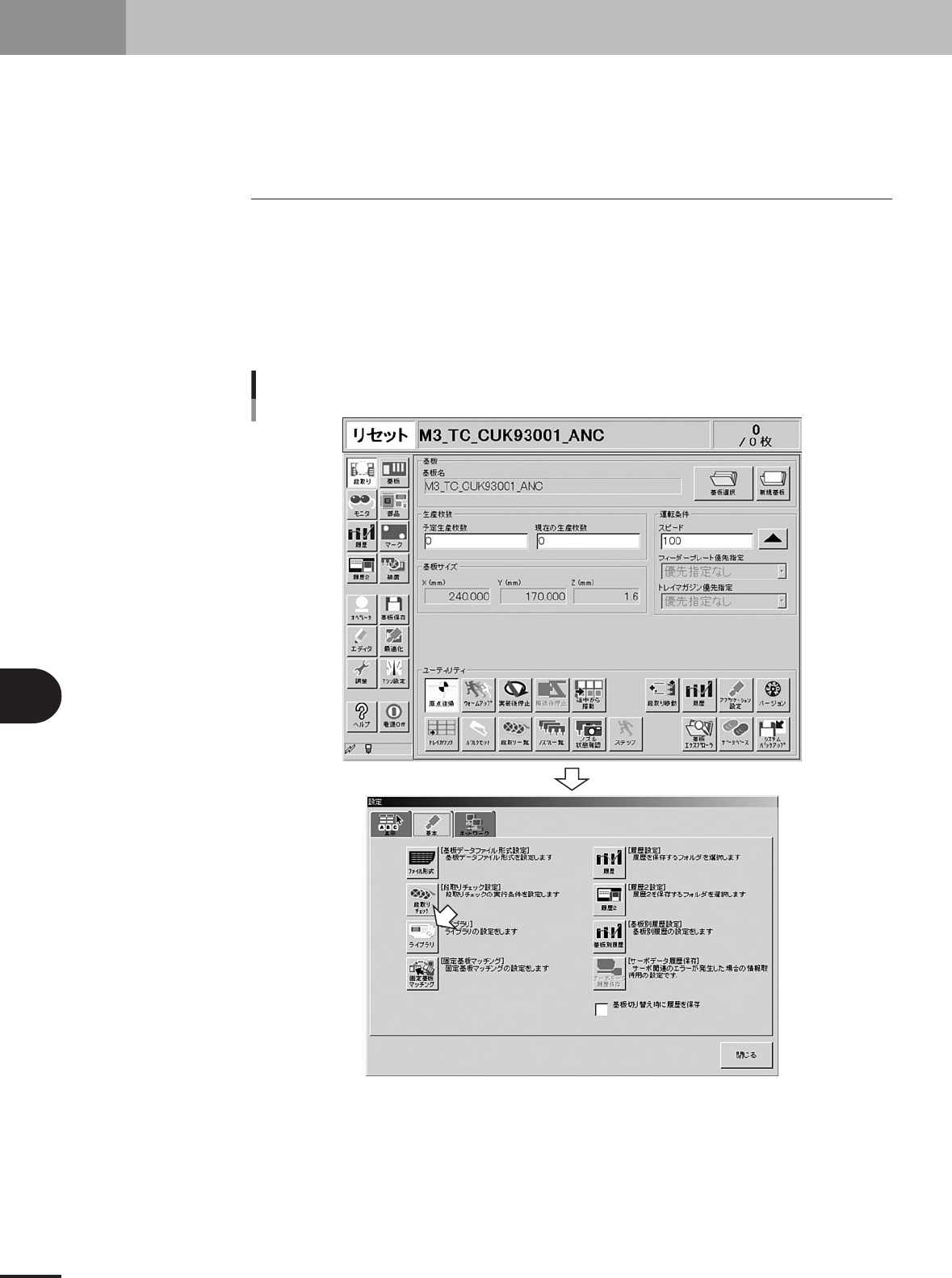 ここでは、ライブラリーをマシン本体または LAN で接続されたパソコン上に設定する方法を説明し