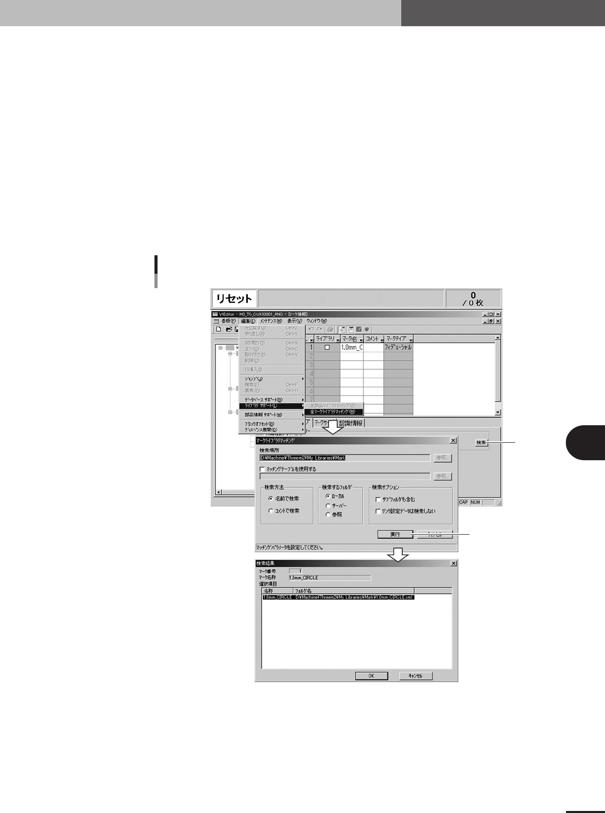 ライブラリーマッチング画面が表示されますので、検索場所を確認し[実行]ボタンを押し