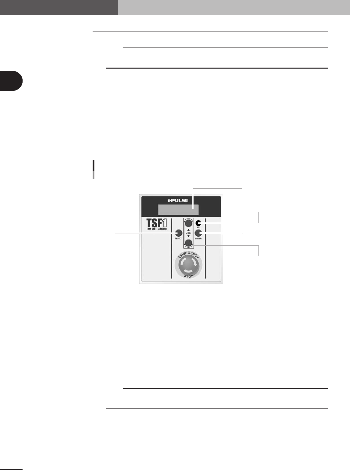 2- 6 TSF1 の 取 り 扱 い 2 2.4 TSF1 の 操 作 n 要点 TSF1には、シャトル軸の原点復帰/部品交換位置移動とJOG操作機能があり、以下の様な場合に使用 します。 例1 :トレイデータに設定した部品個数を吸着し終える以前にトレイを交換する場合 通常生産では、トレイ部品を全て吸着し終えると部品切れとなり、シャトルはトレイ交換のため 自動的に部品交換位置に移動します。例えばトレイに部品が半数しかなく、部品カウント…
